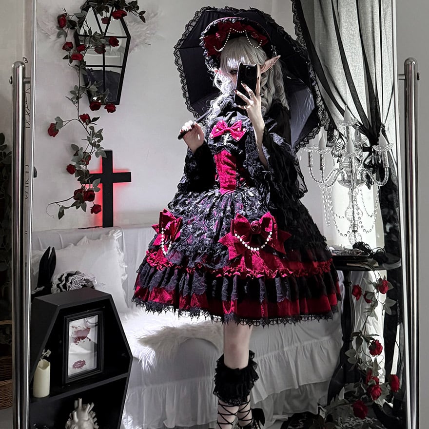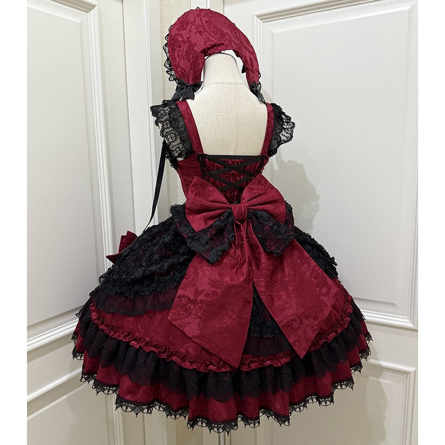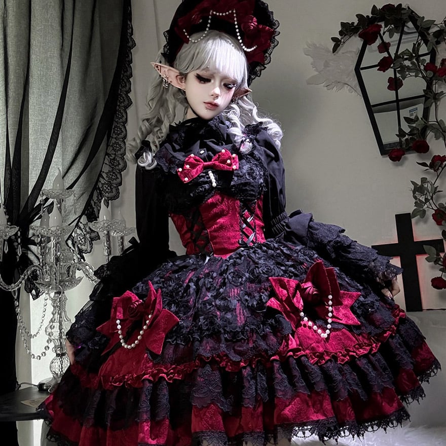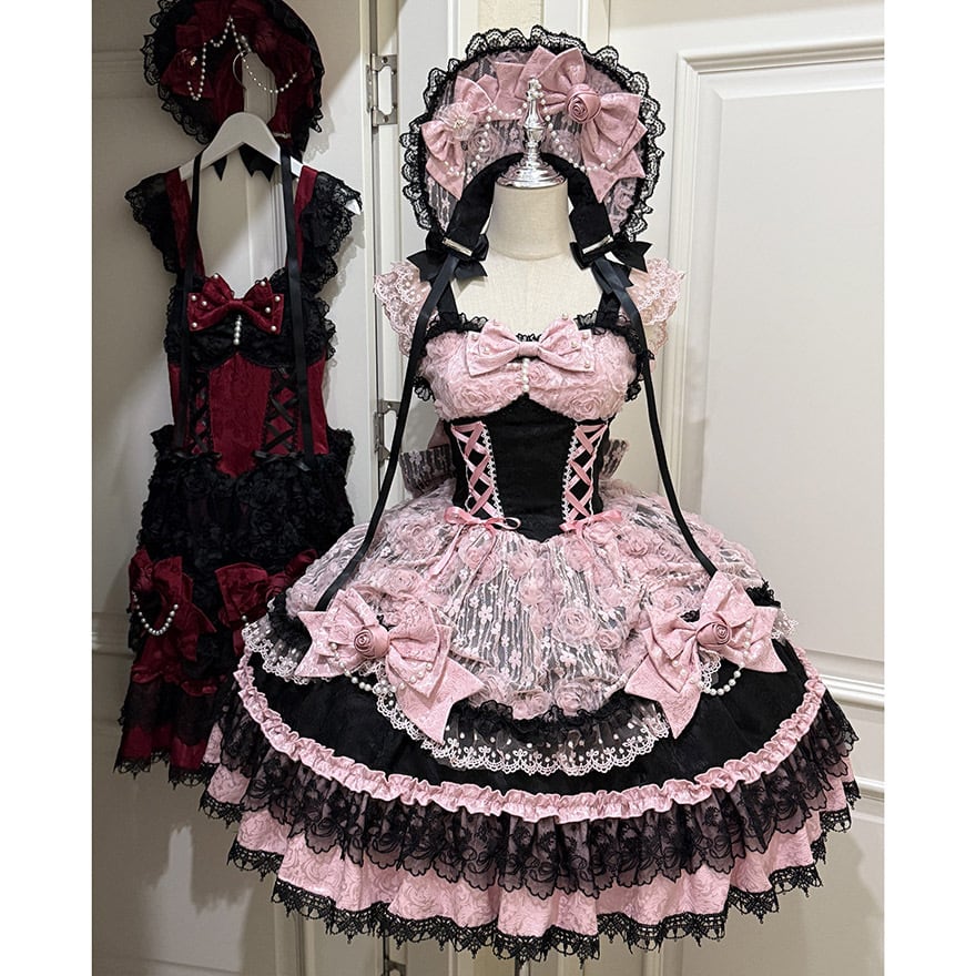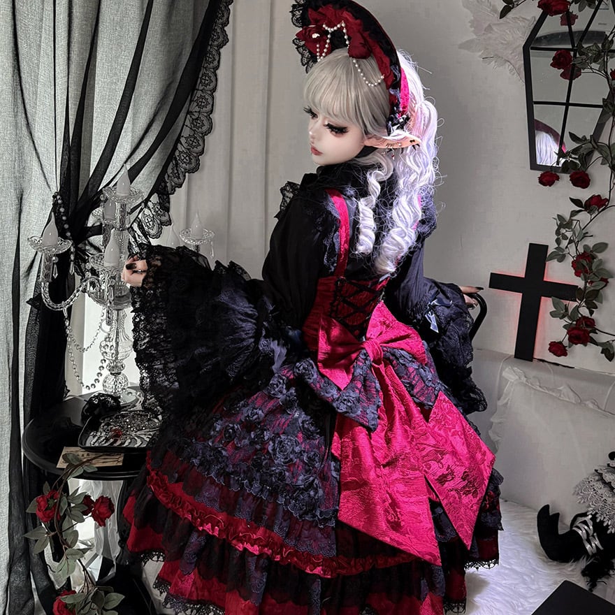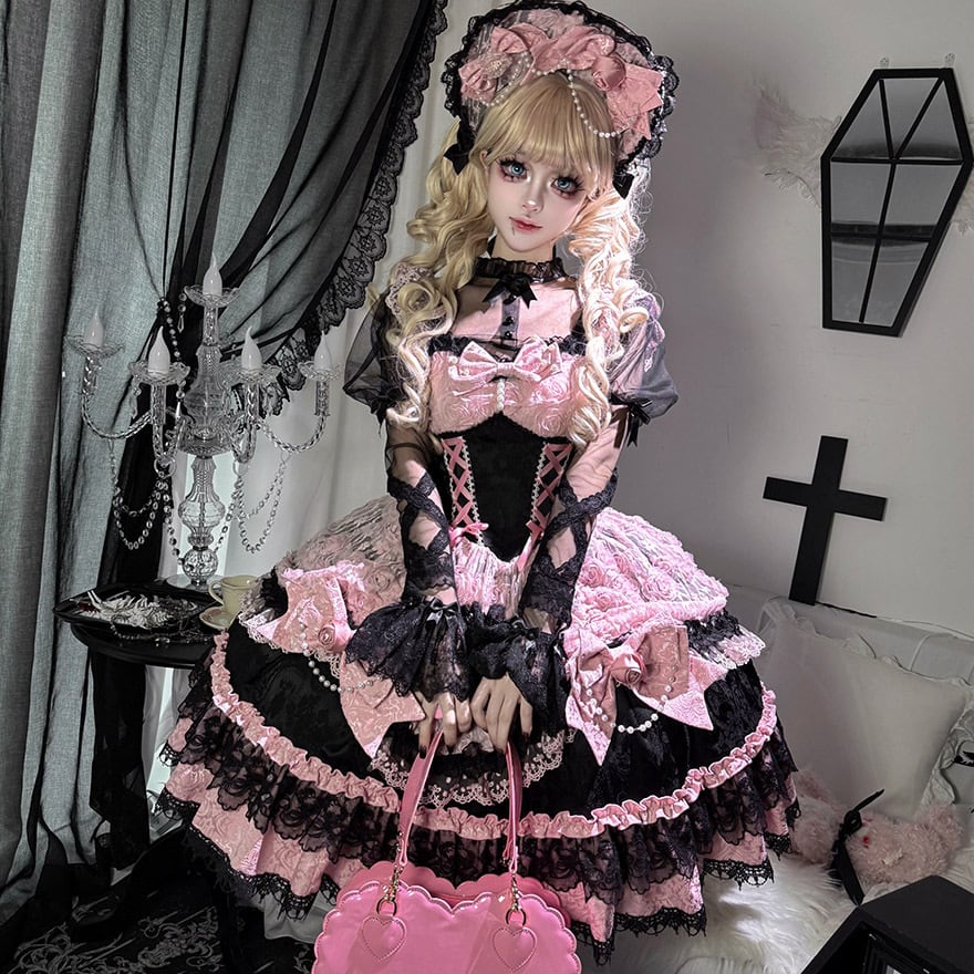 地雷系 ボンネット ダーク ゴシック レースアップ 薔薇 リボン イベント衣装 コンカフェ