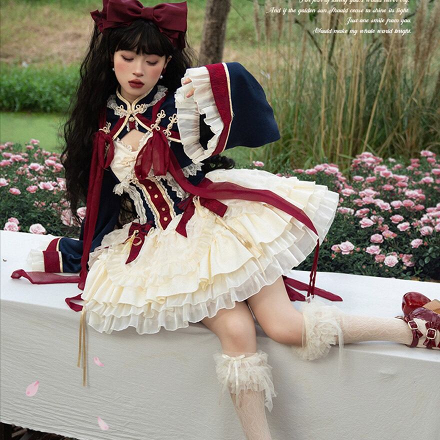ゴスロリ通販 With U チャイナドレス 中華ロリィタ セットアップ ケープ ジャンパースカート レース 刺繍 イベント衣装 お茶会 パーティ 撮影会衣装