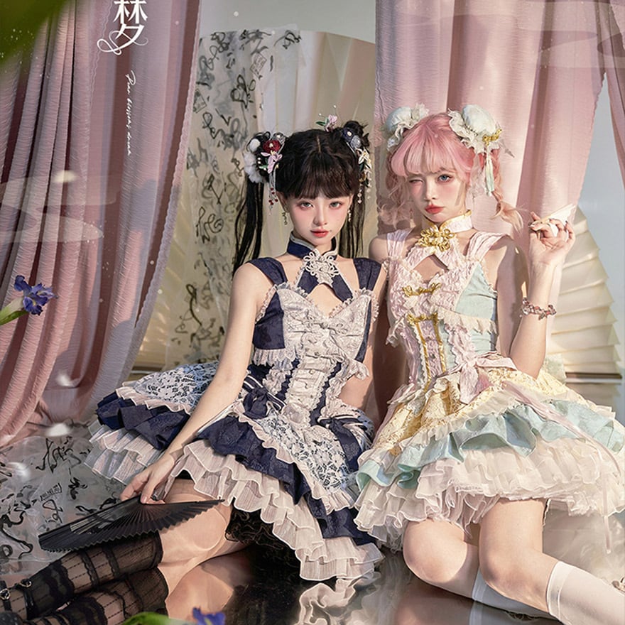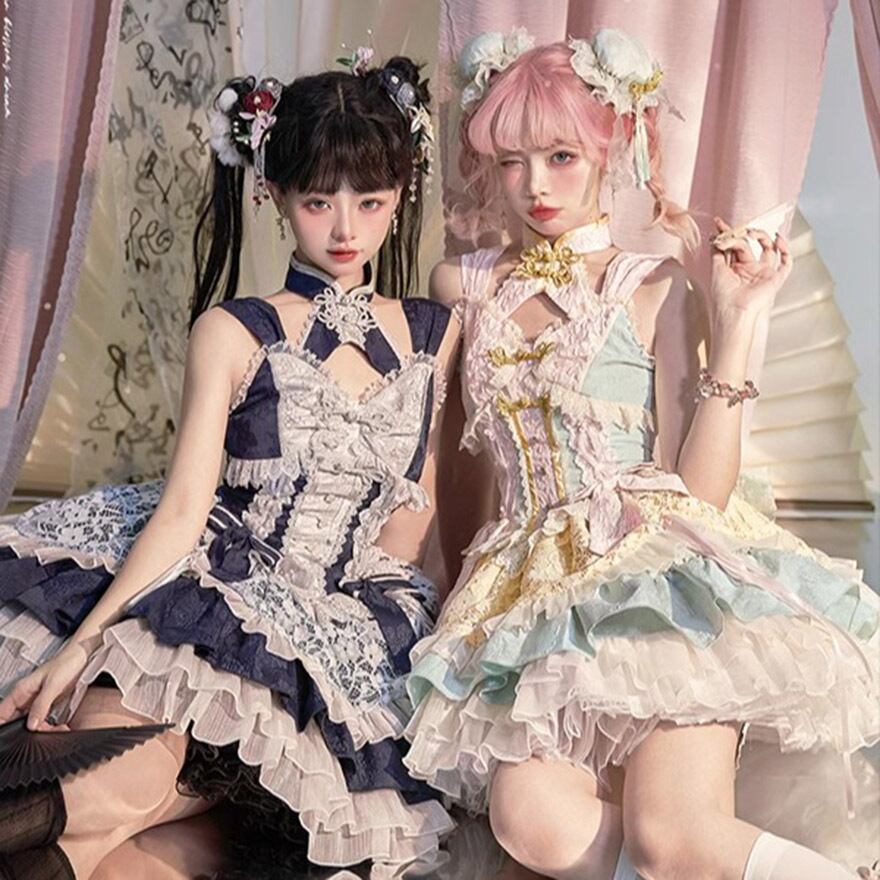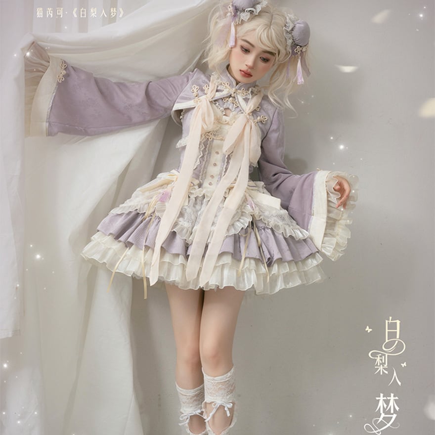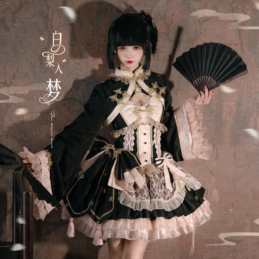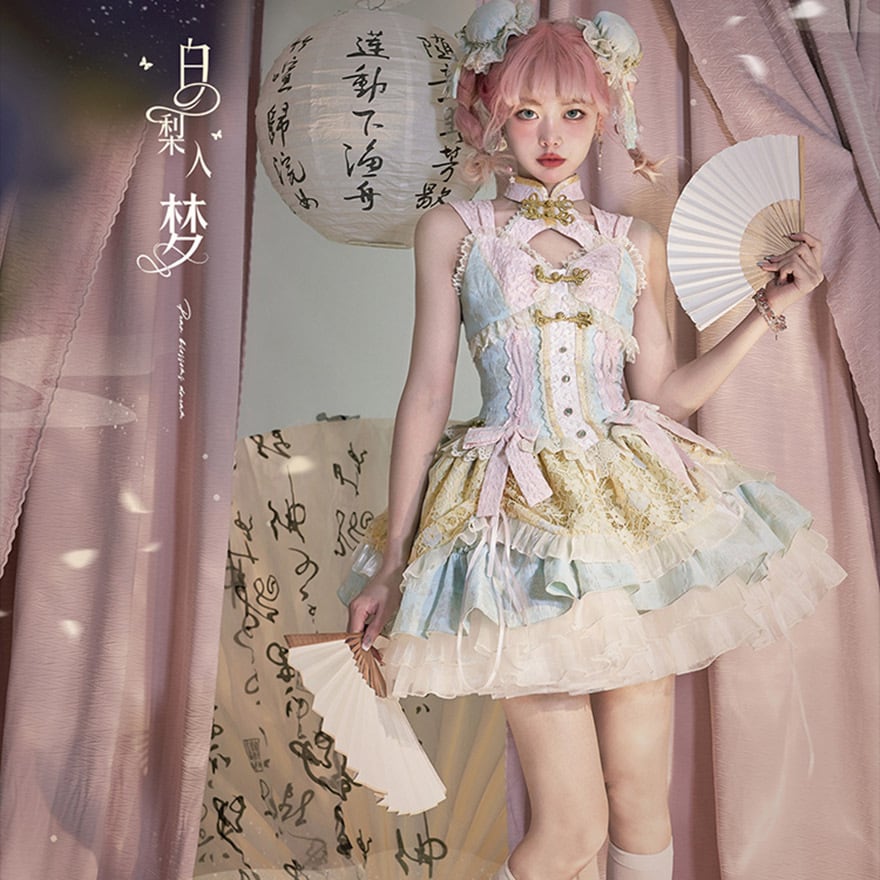 中華風のディテールとロリータの甘さが絶妙に融合した、個性的で目を惹く一着。