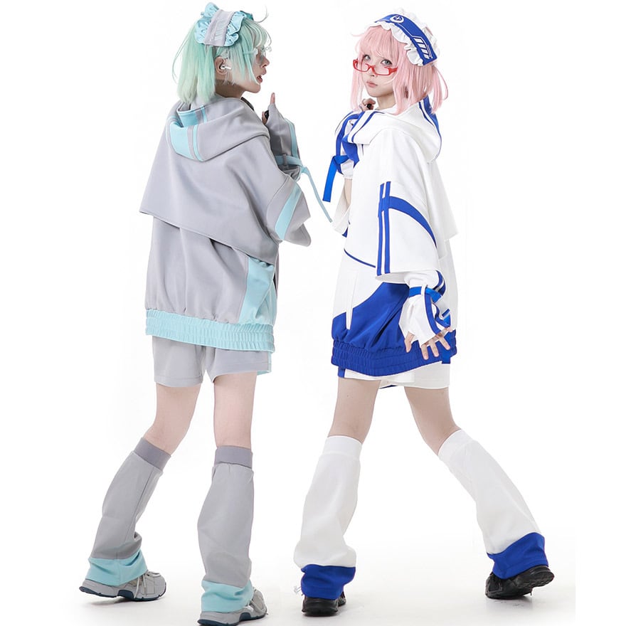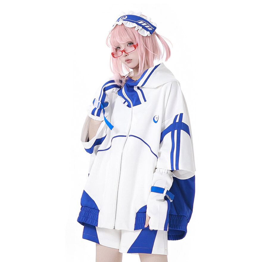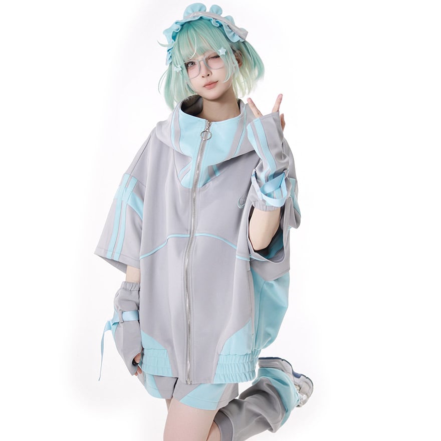 これ一つで全身コーデが完成する、パーカー、ショートパンツ、カチューシャ、アームカバー、レッグウォーマーの豪華5点セットです。