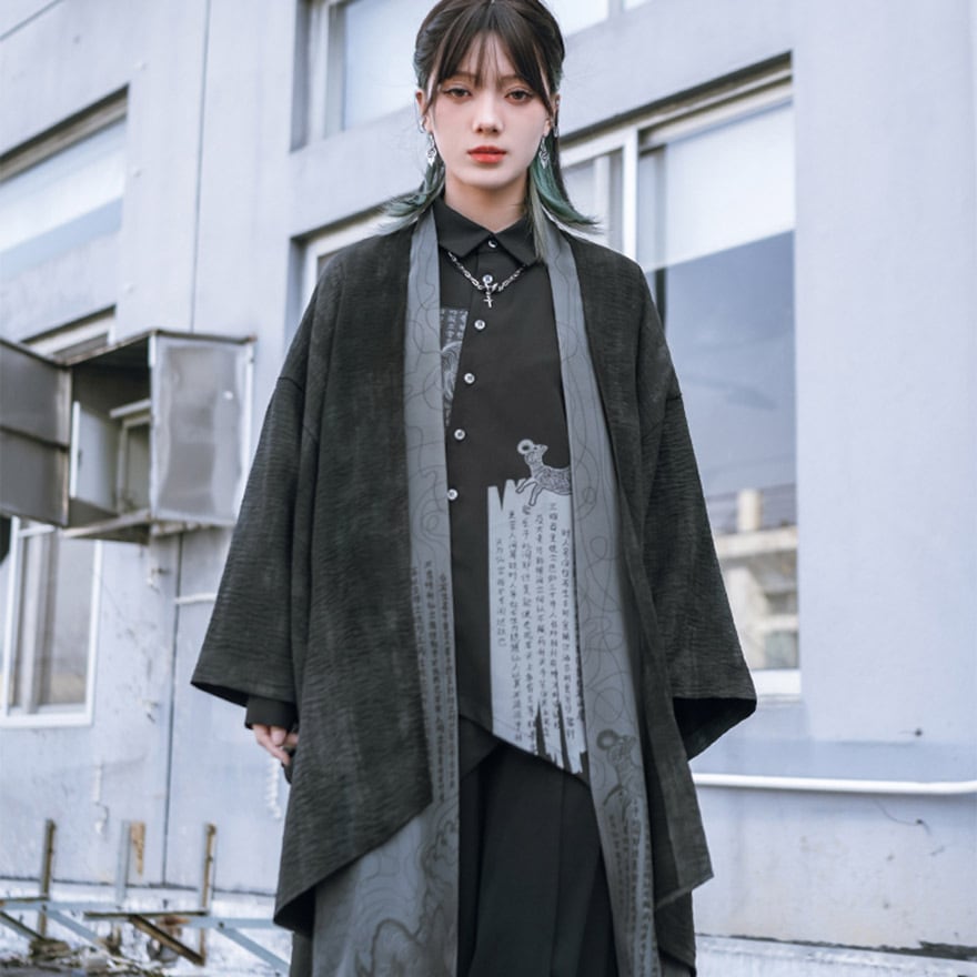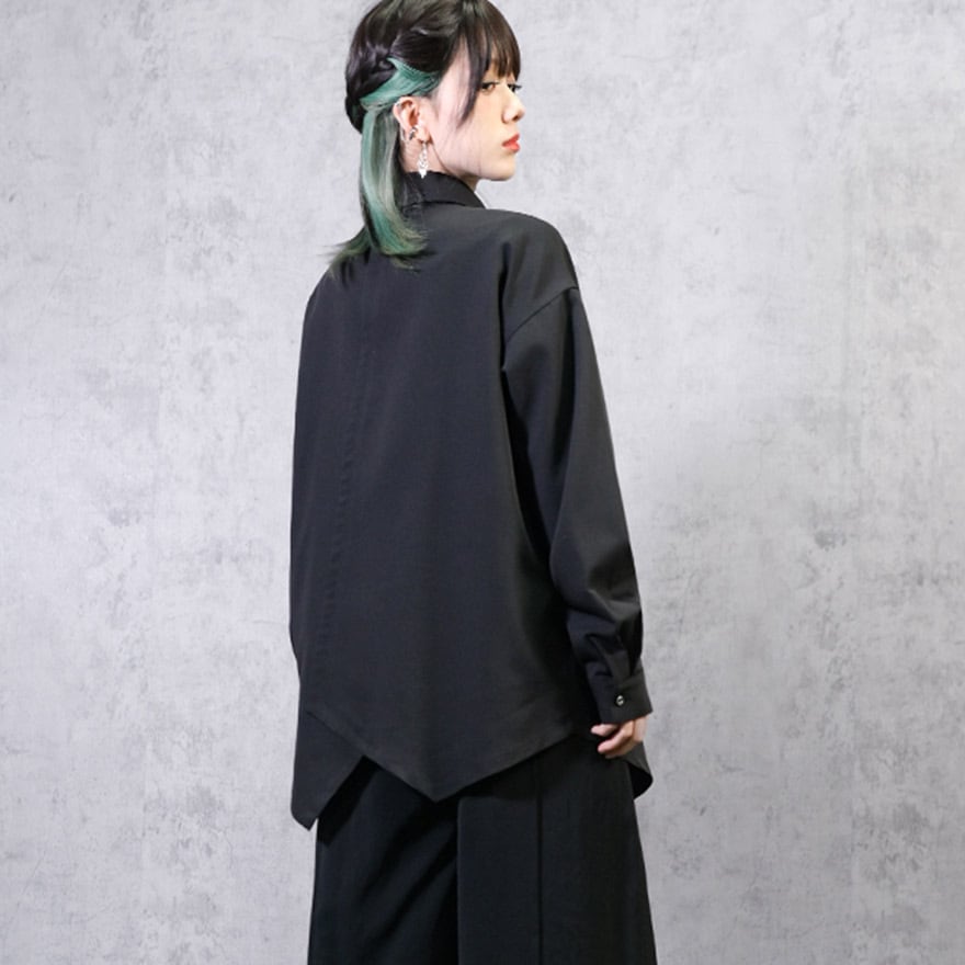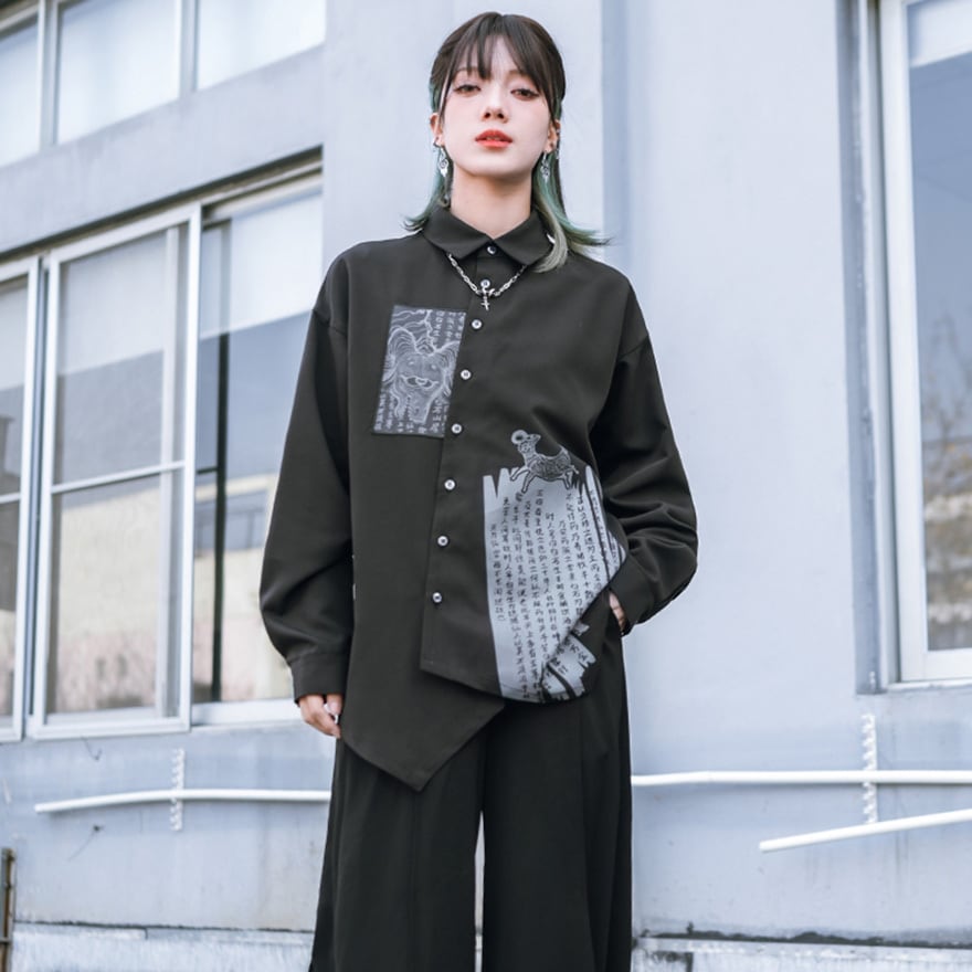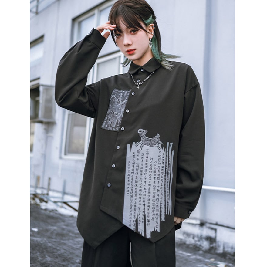 関連キーワード: #デザインシャツ #モード系 #ストリートファッション #サブカル #中華風 #アシンメトリー #漢字 #プリントシャツ #個性的 #ユニセックス #黒シャツ #オーバーサイズ