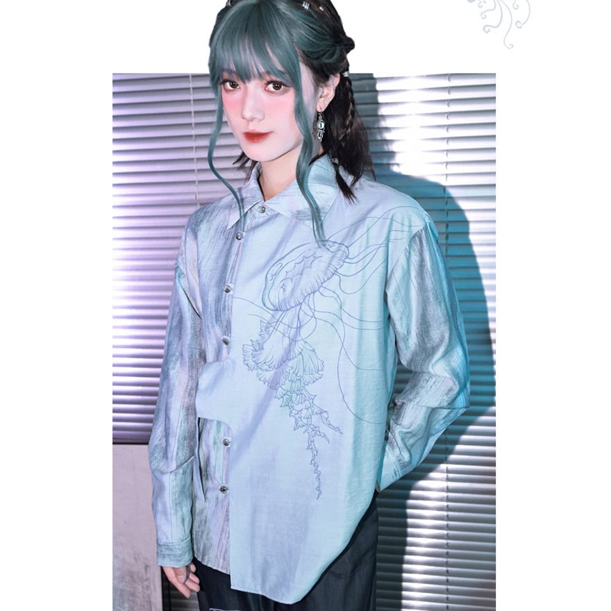 関連キーワード: #デザインシャツ #モード系 #サブカル #ストリートファッション #クラゲ #海月 #プリントシャツ #アシンメトリー #個性的 #ユニセックス #オーバーサイズ #アート #幻想的