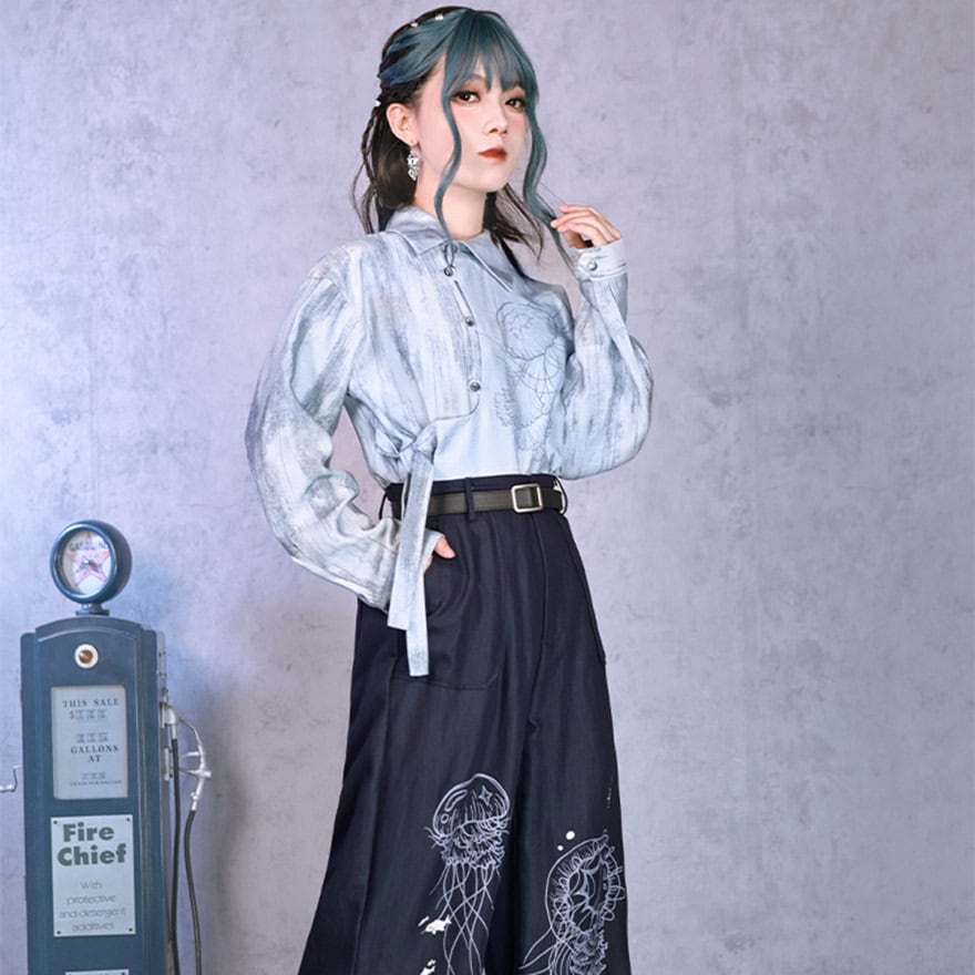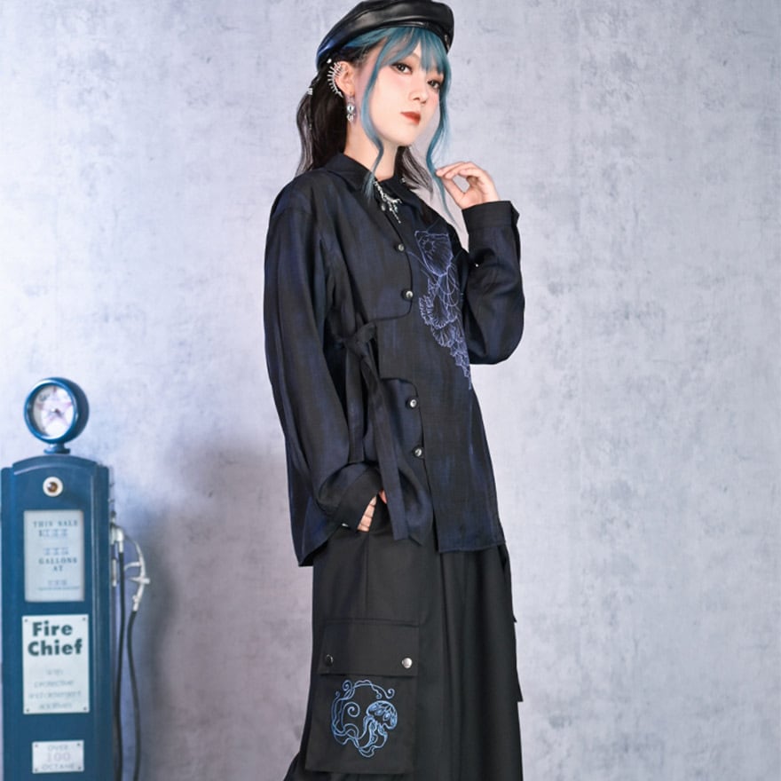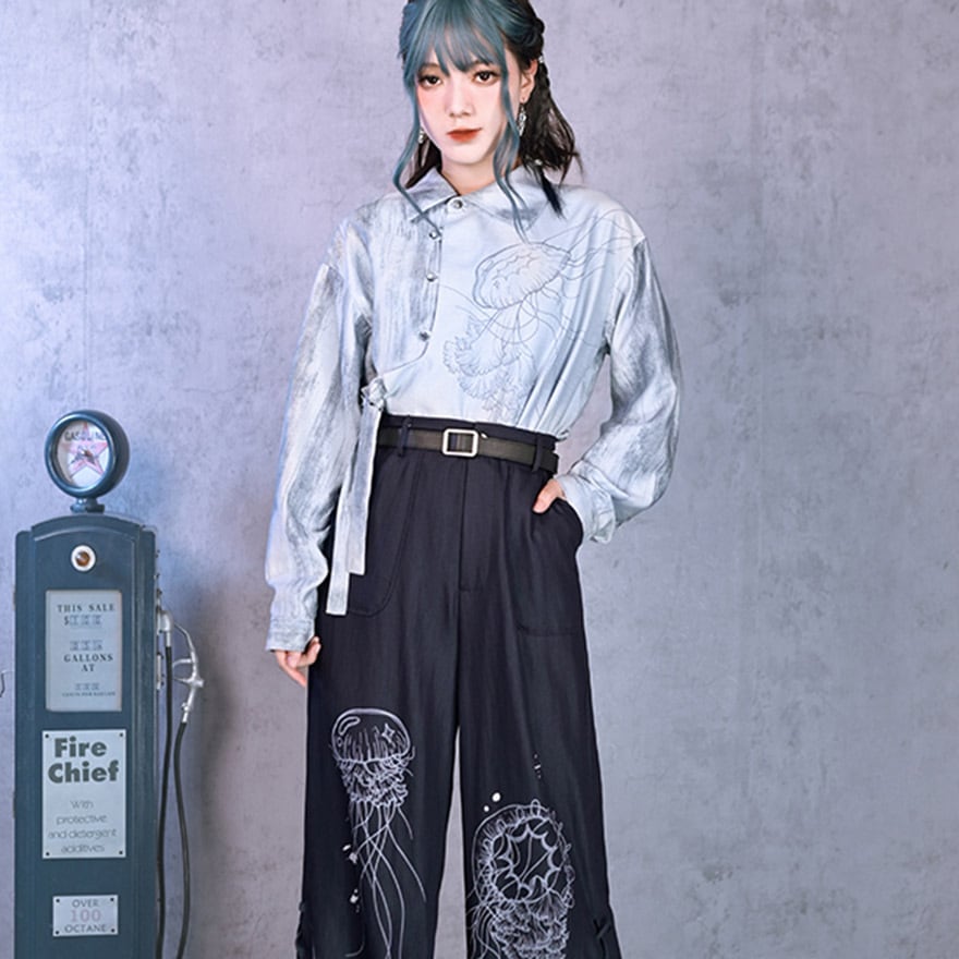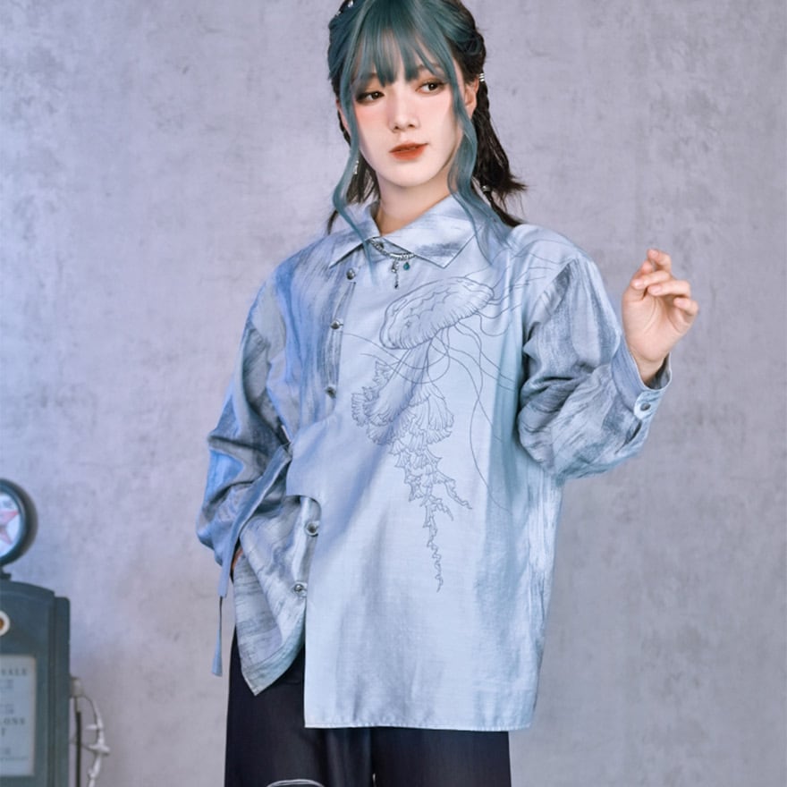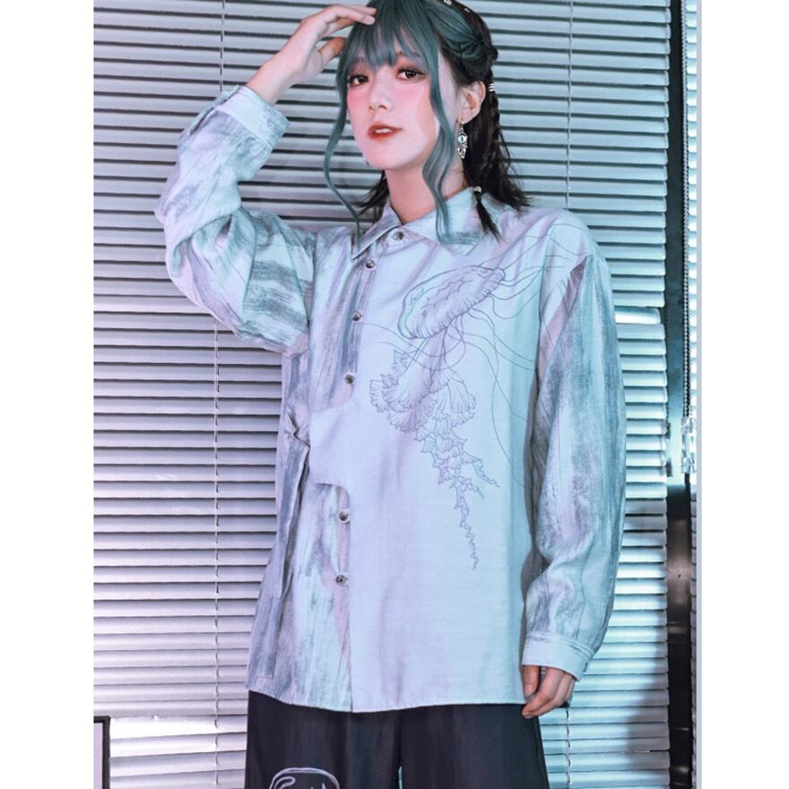 中華ゴシック デザインシャツ 古怪舍 クラゲ プリント柄 サブカル系 アラサー 30代