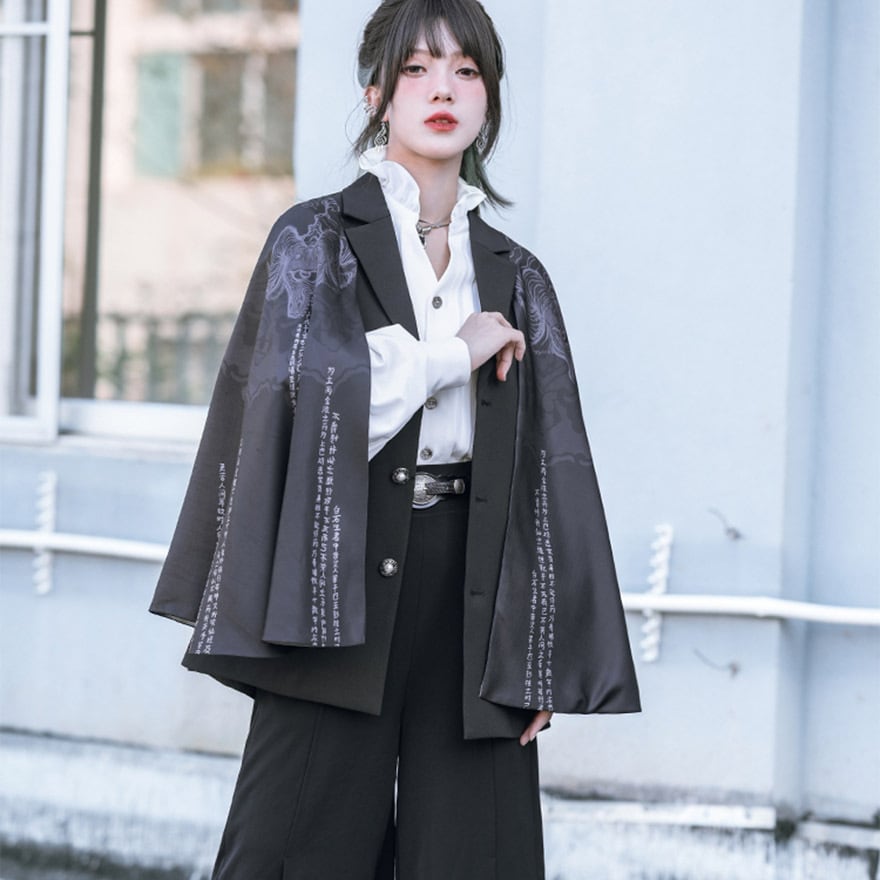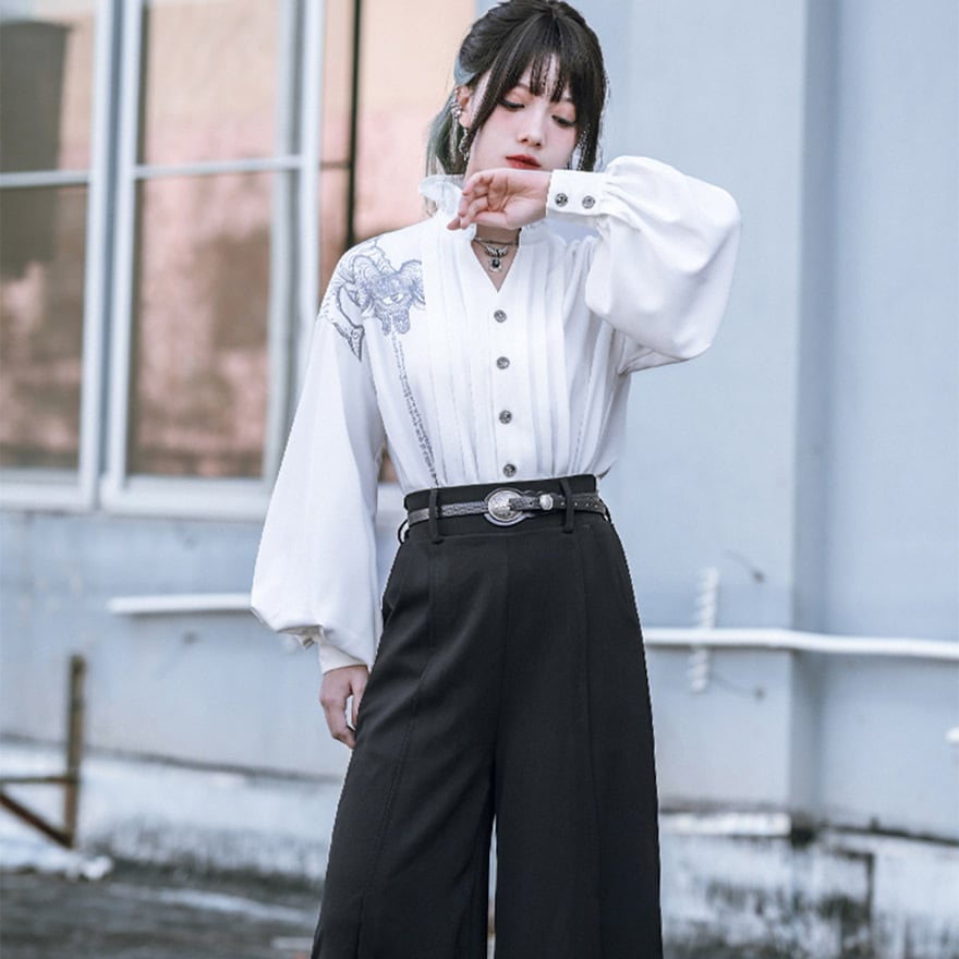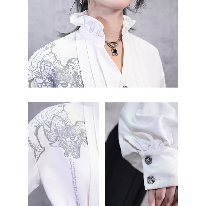 関連キーワード: #中華風 #ブラウス #デザインブラウス #モード系 #ストリートファッション #サブカル #個性的 #アート #プリント #バルーンスリーブ #フリルネック #とろみブラウス #大人かわいい #きれいめ #アラサーファッション
