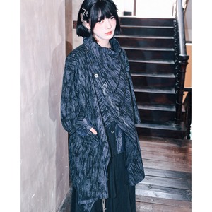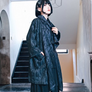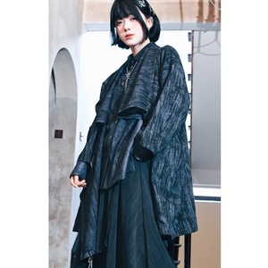 まるで水墨画のような、かすれた濃淡のある生地がアーティスティックな雰囲気を醸し出す、アシンメトリーデザインのジャケットです。
