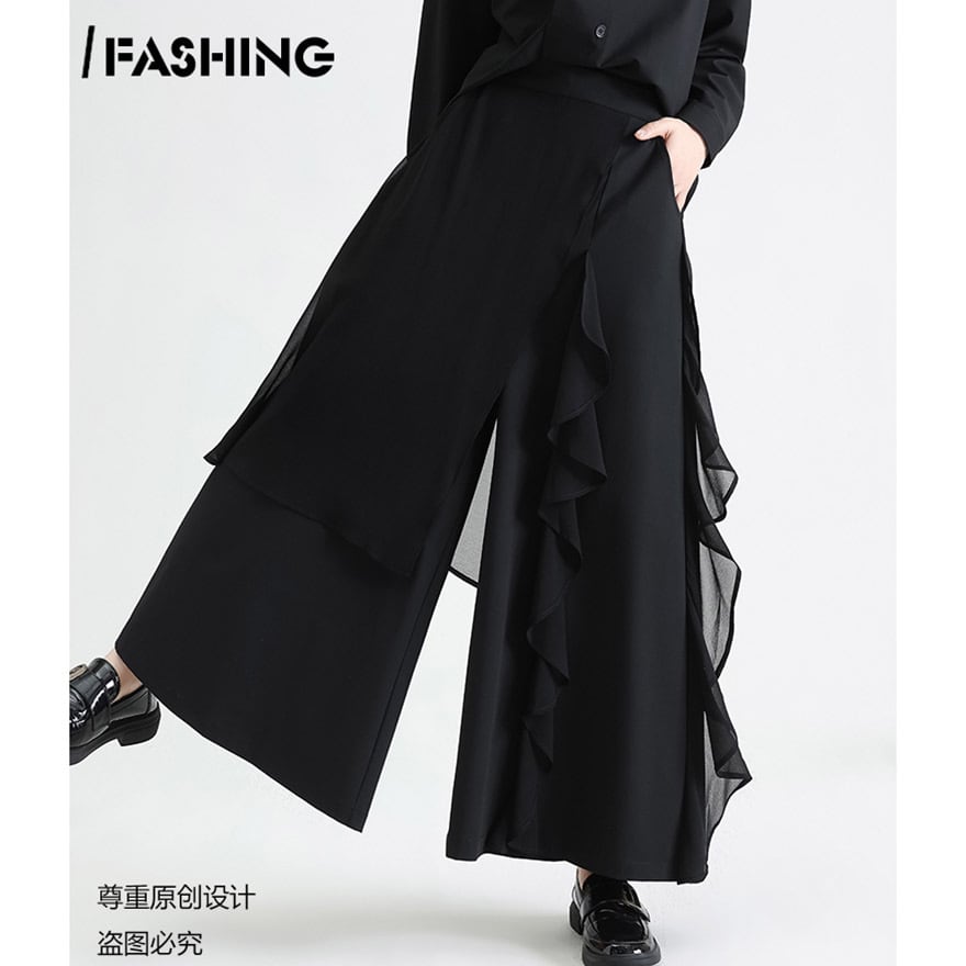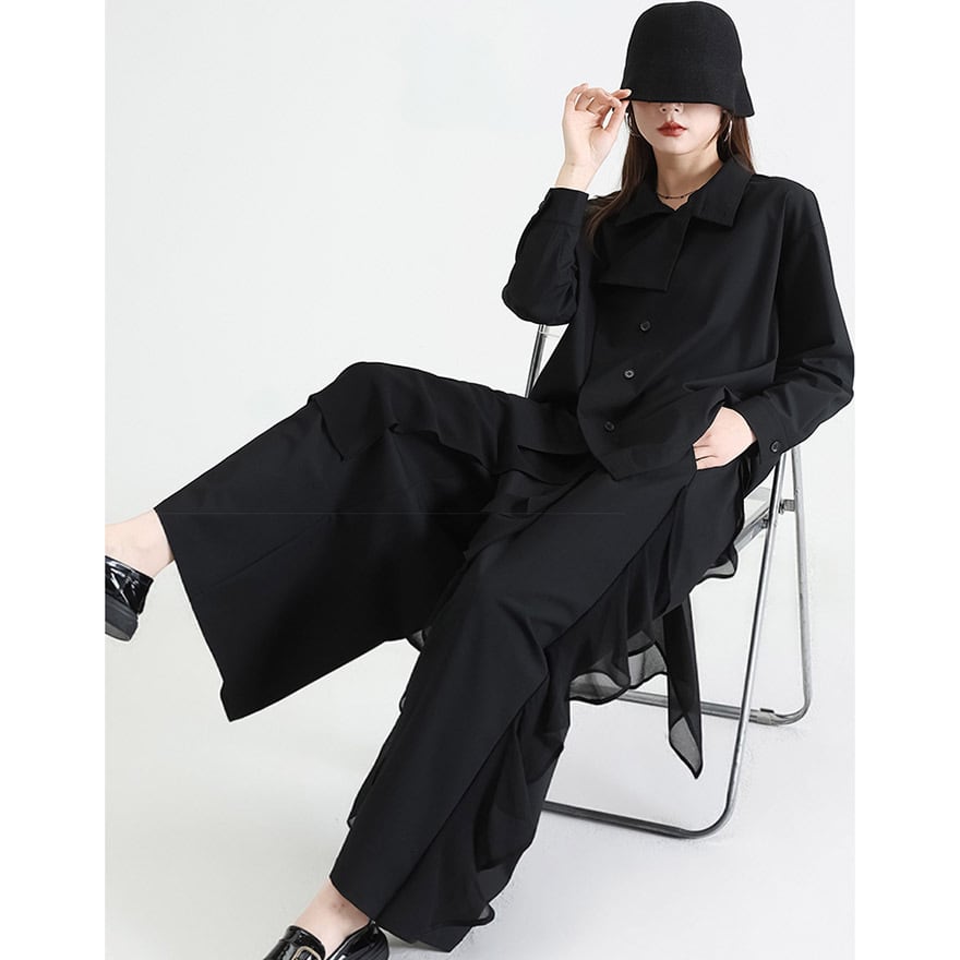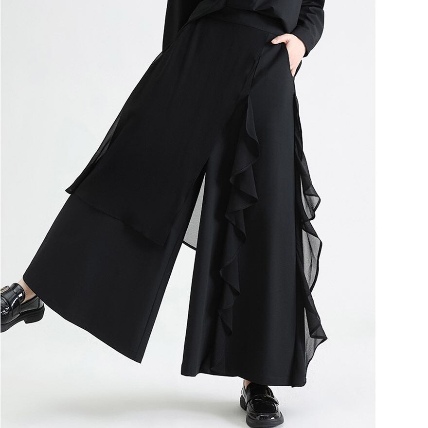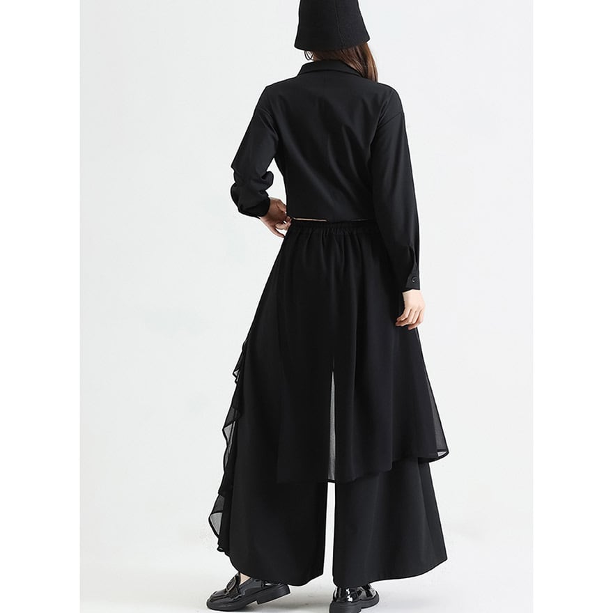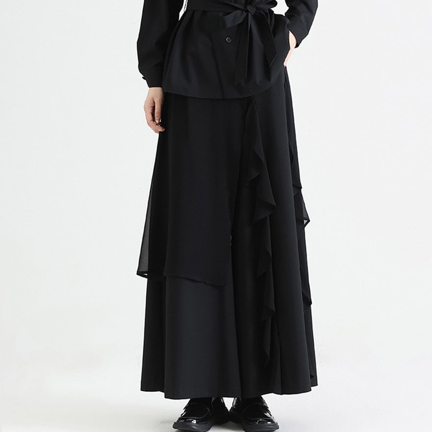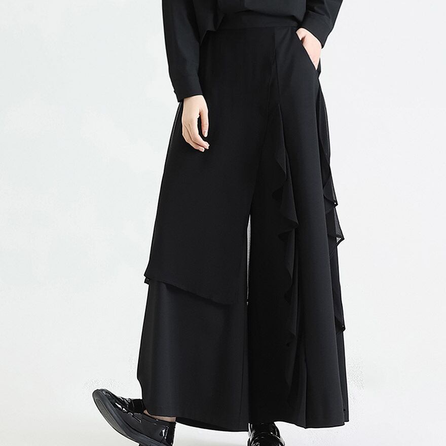 関連キーワード: #ワイドパンツ #モード系 #ゴシック #ストリートファッション #アシンメトリー #フリル #レイヤード #個性的 #デザインパンツ #黒コーデ #大人こなれ感 #アラサーファッション #スカートパンツ