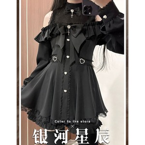 ゴスロリ 地雷系 オフショル ワンピース ステッチ レース フリル おしゃれ着 秋服