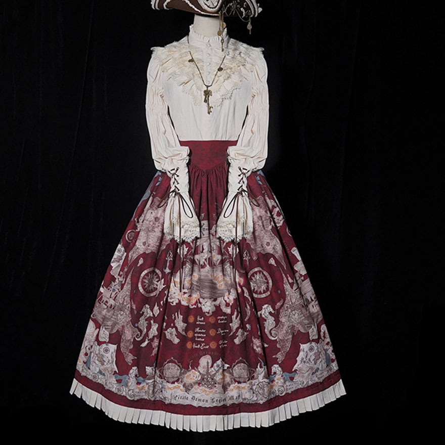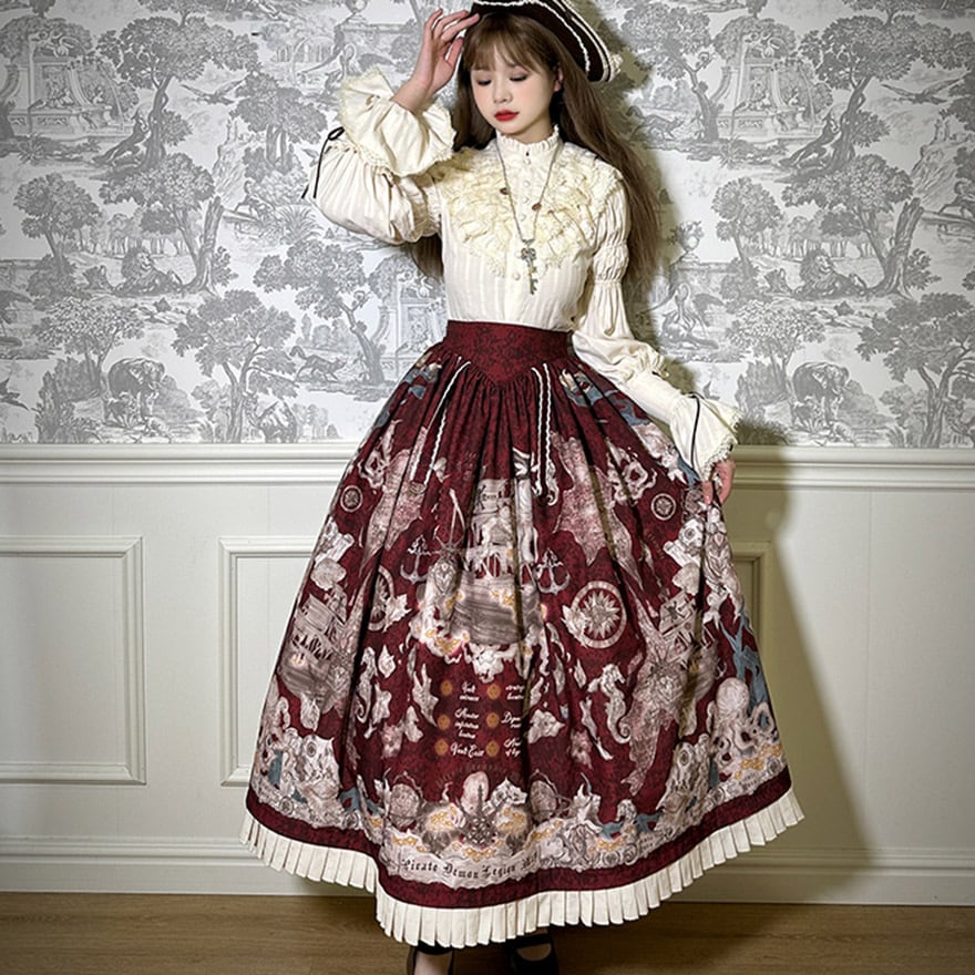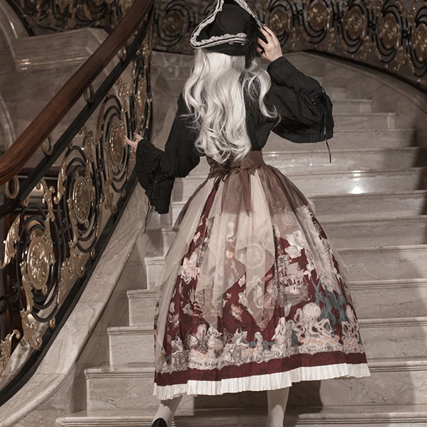 ブラウスやコルセットなど、合わせるトップスによってゴシックにもクラシカルにも、海賊風にも着こなせる高い汎用性が魅力です。
