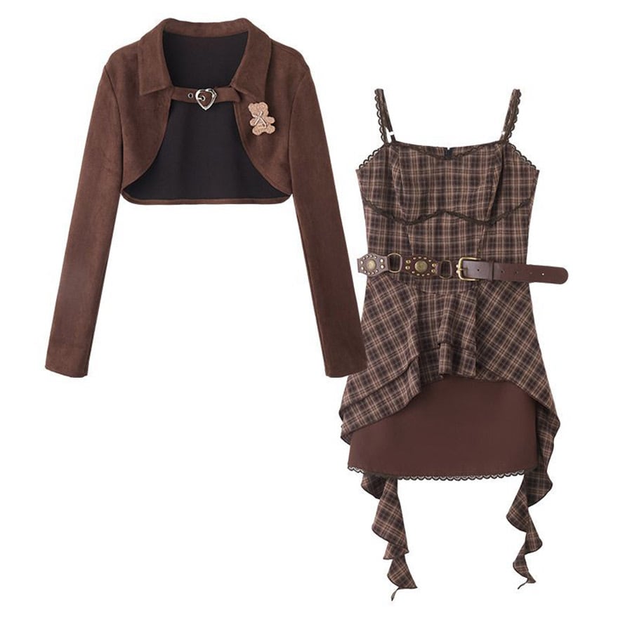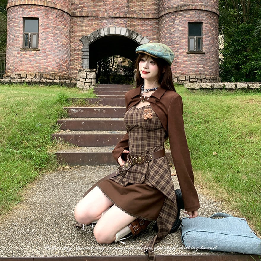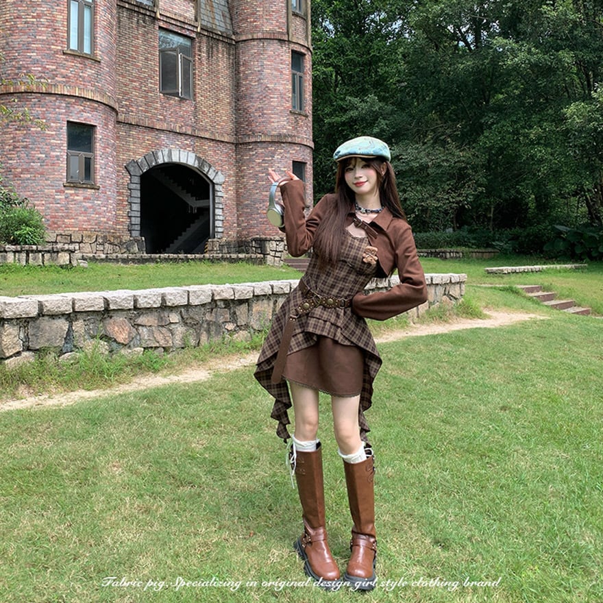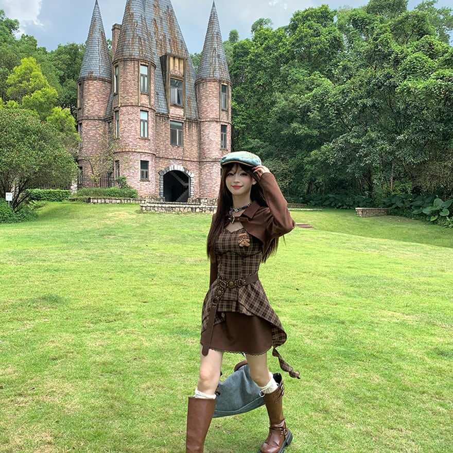 関連キーワード: #スチームパンク #セットアップ #チェック柄 #ミニワンピース #レトロ #イベント衣装 #個性的 #ガーリー #ブラウン #コルセット