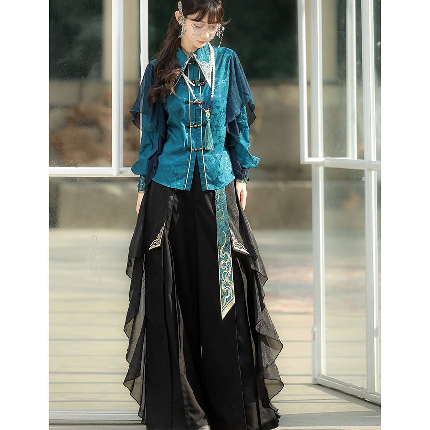 関連キーワード: #中華ロリィタ #華ロリ #セットアップ #チャイナ風 #オリエンタル #ターコイズ #ワイドパンツ #コスプレ #撮影会 #個性的ファッション