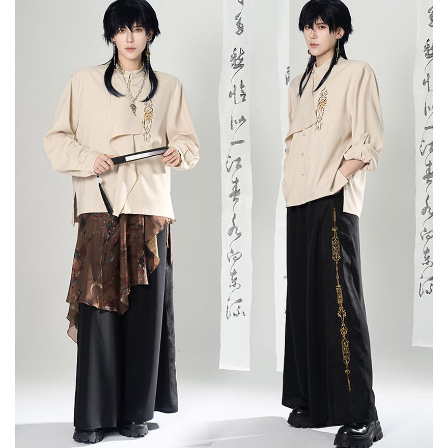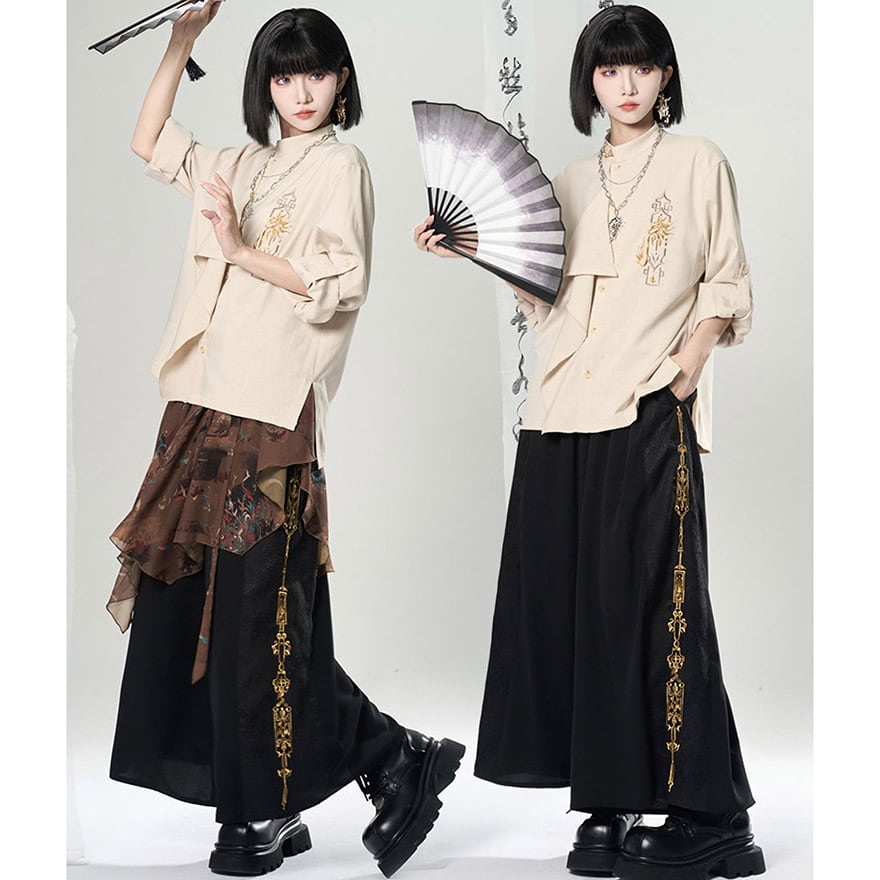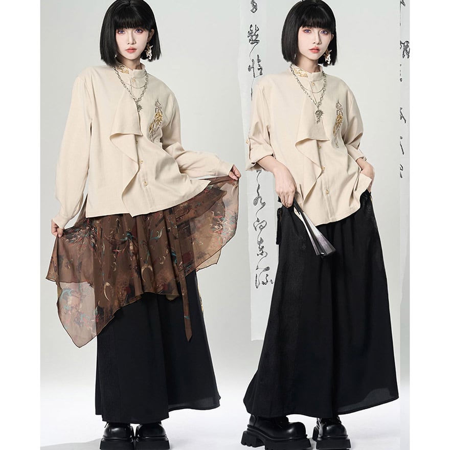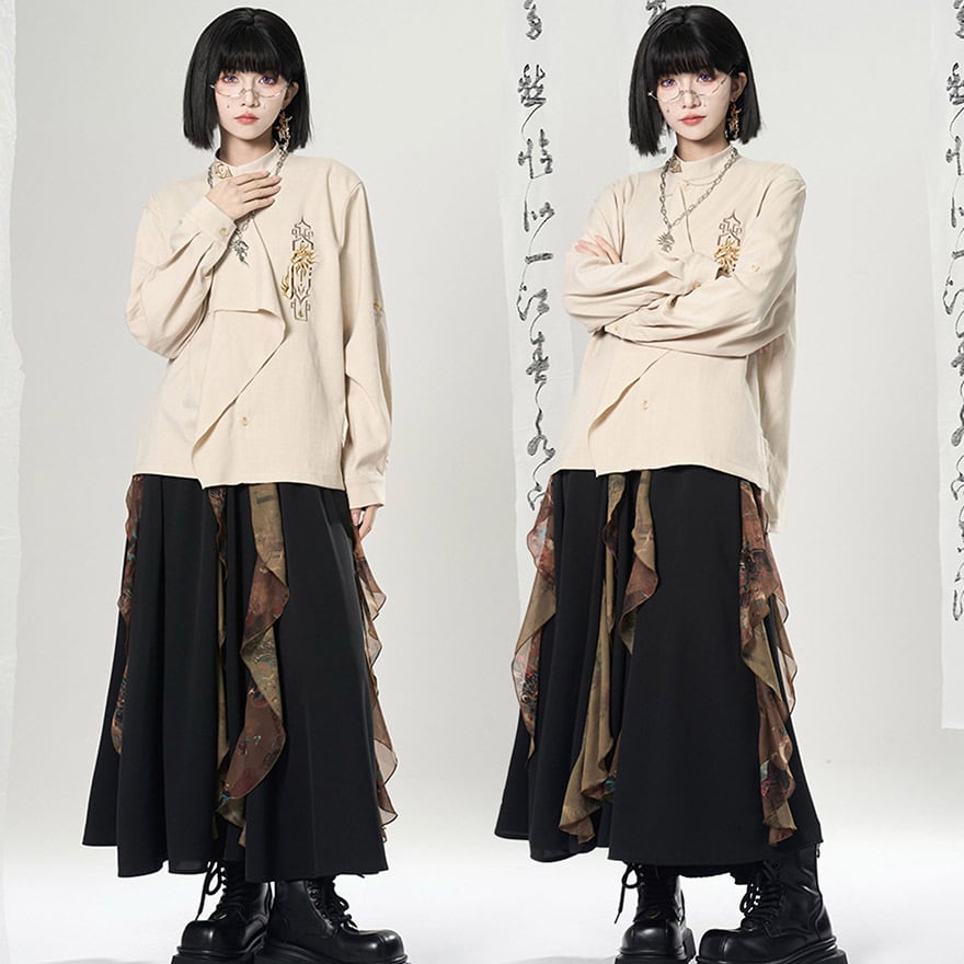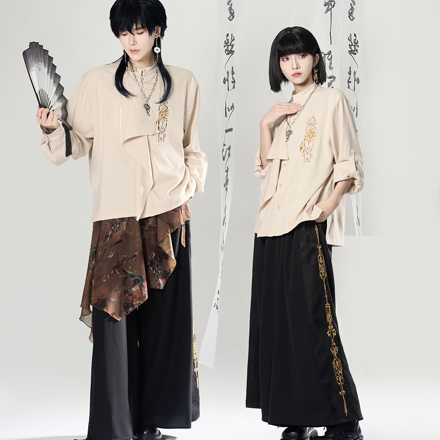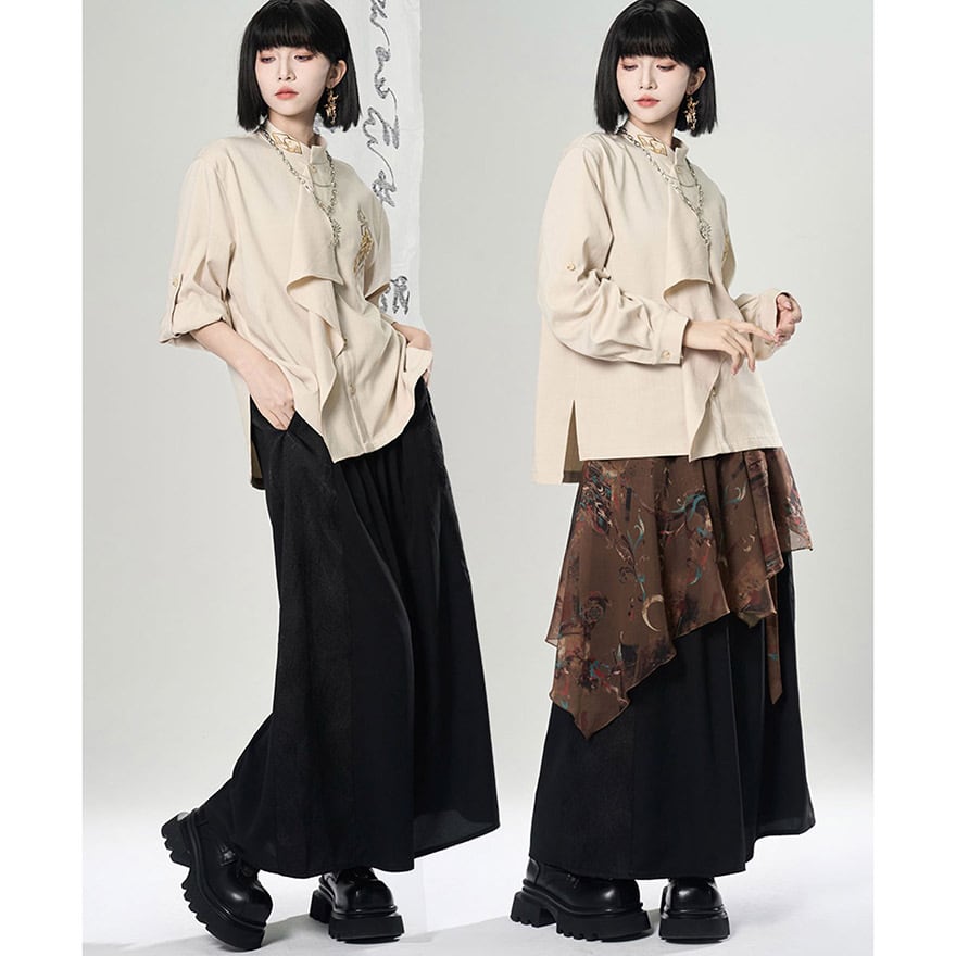 関連キーワード: #チャイナ風 #中華風 #シャツ #刺繍 #モード系 #サブカル #ジェンダーレス #ユニセックス #個性的 #スタンドカラー #アシンメトリー