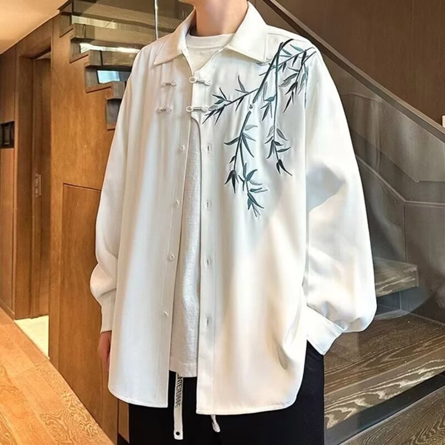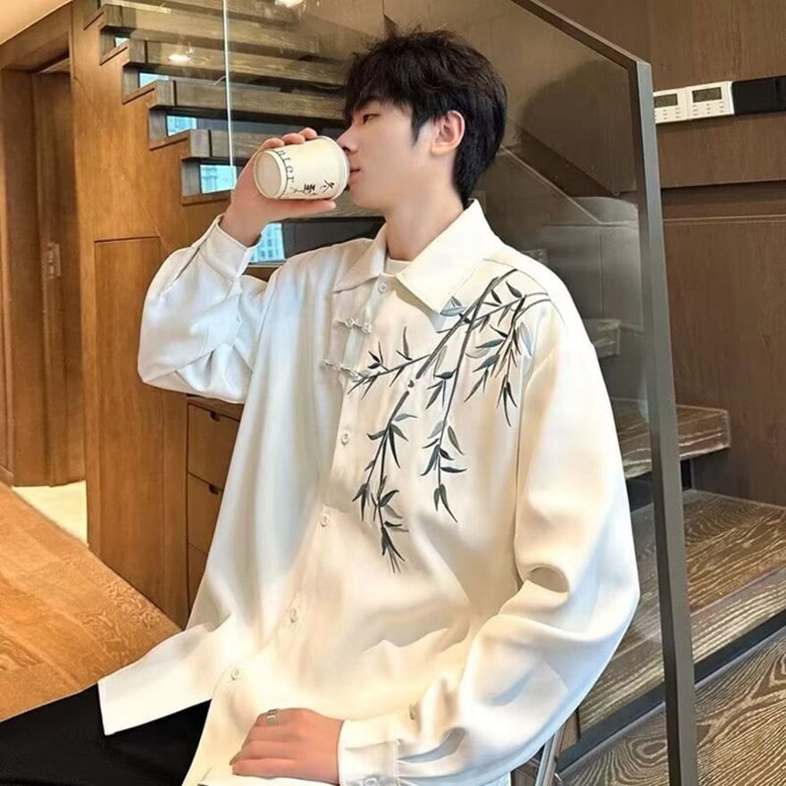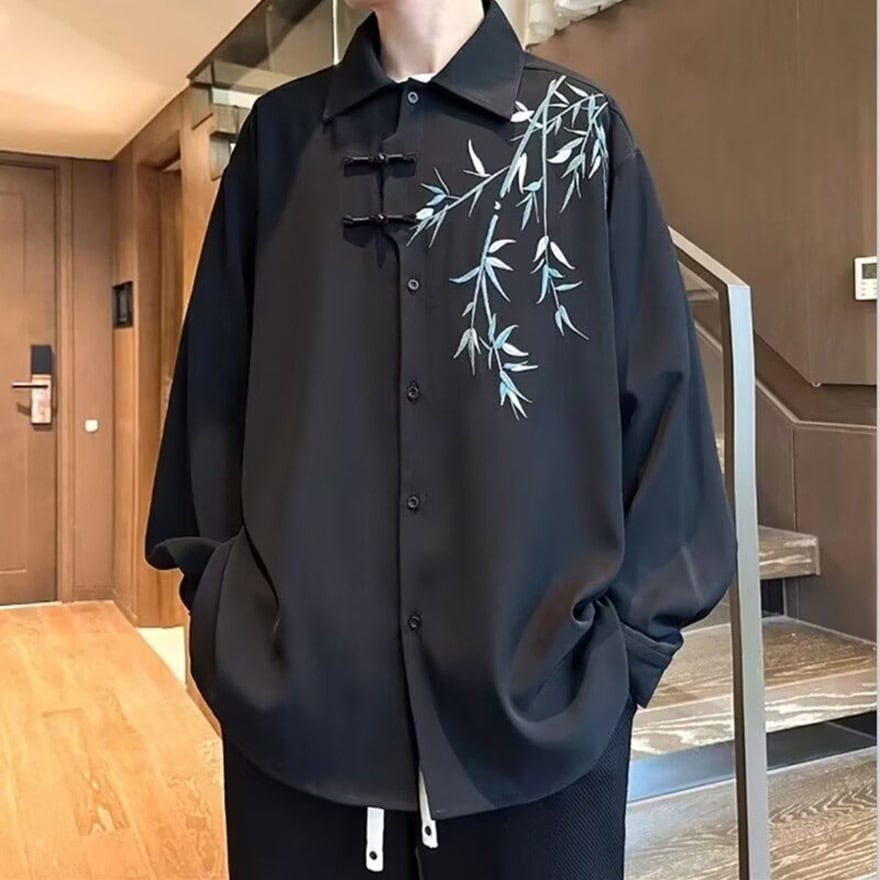 関連キーワード: #サブカル系 #ストリートファッション #チャイナシャツ #中華風 #刺繍 #竹 #水墨画風 #オーバーサイズ #メンズ #ユニセックス #個性的 #モード系 #アシンメトリー