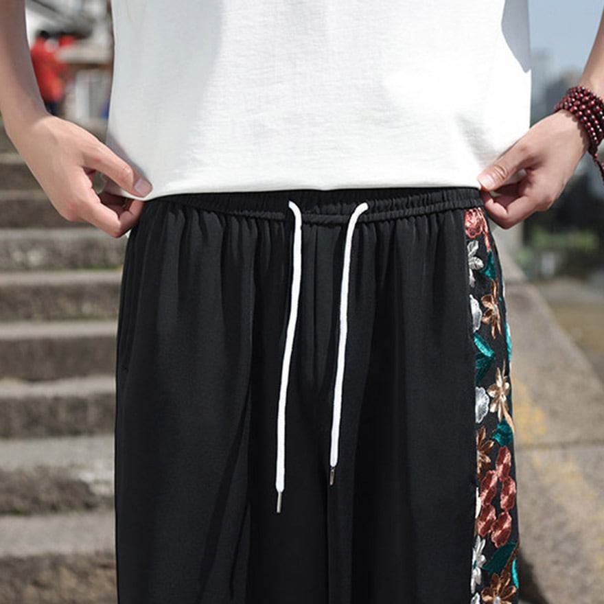 メンズゴシック チャイナ風 パンツ 花柄 刺繍 サブカル系 クール ストリートファッション
