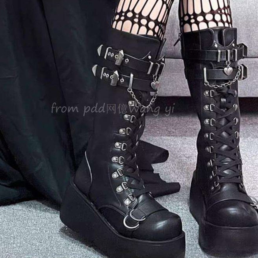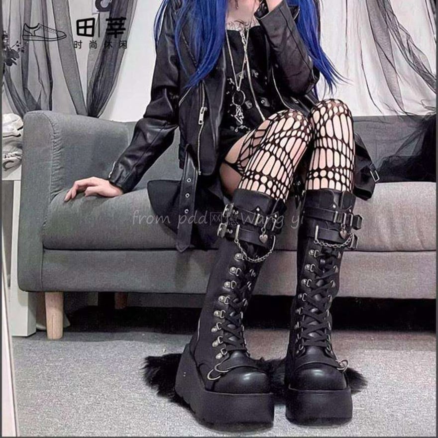 関連キーワード: #地雷系 #サブカル #パンク #ゴシック #V系 #ストリートファッション #厚底ブーツ #ロングブーツ #厚底 #編み上げ #レースアップ #チェーン #ハート #可愛い #韓国ファッション