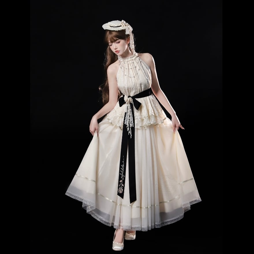 月の光を纏う、ロマンチックなインナー。ホルターネックと繊細なレースが、あなたのロリィタコーデをさらに上品で特別なものにする。