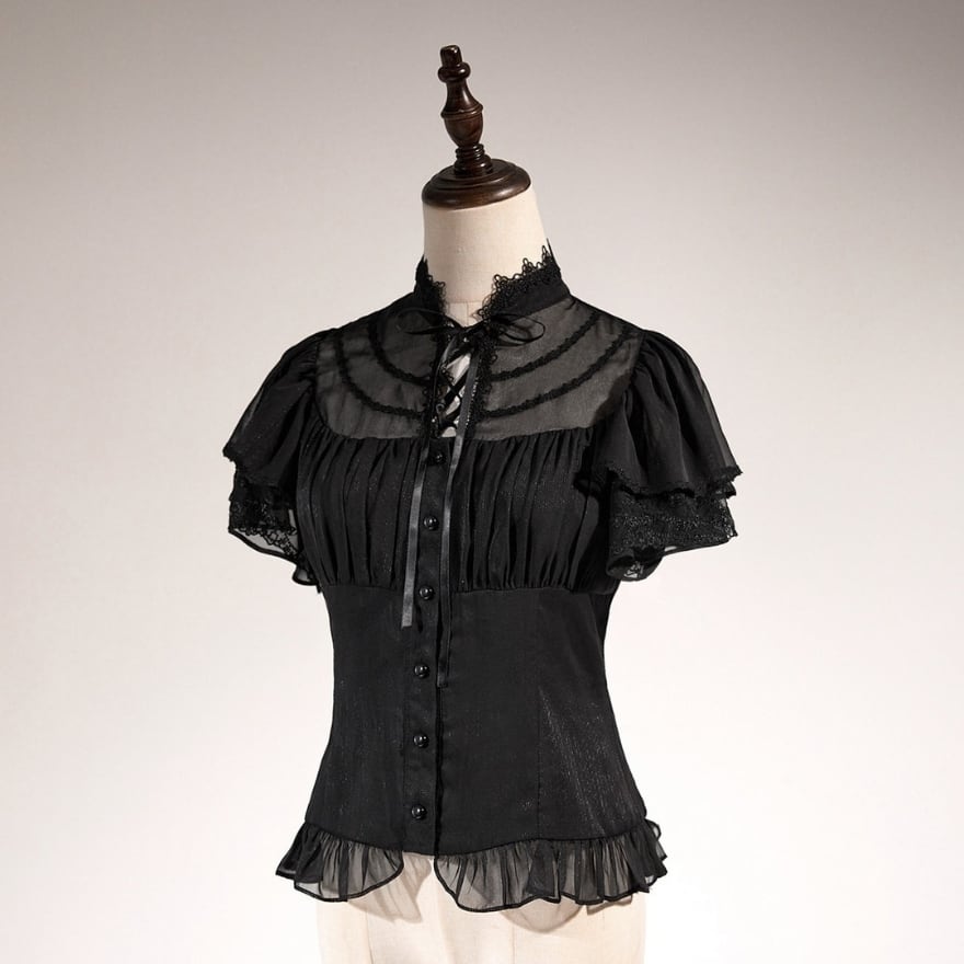 このトップスは、中華風の要素をロリィタファッションに取り入れた、ユニークなデザインが特徴です。