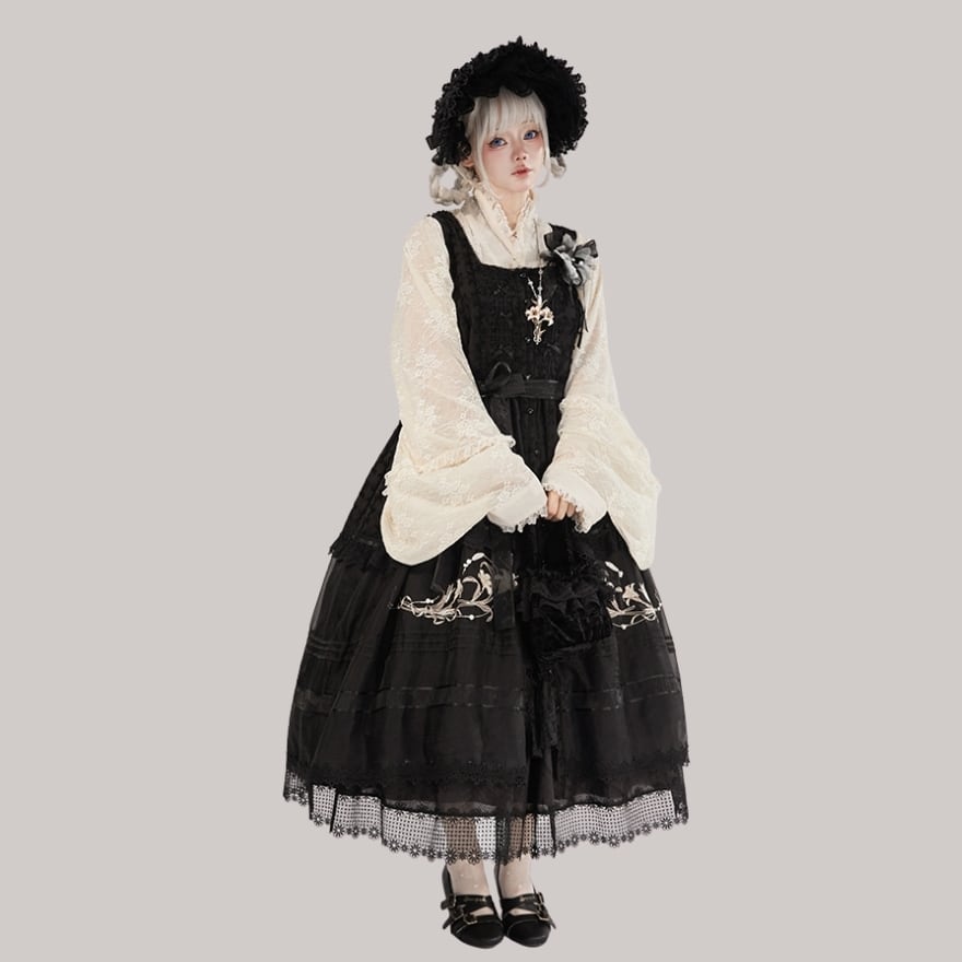 ブラウスやカットソーと合わせるだけで、簡単に中華ロリィタのスタイルが完成します。