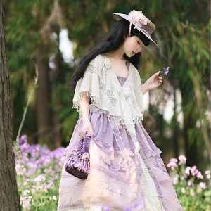 ストラップ部分や胸元には、クラシカルなフリルやレースがあしらわれており、さらに可憐な雰囲気をプラスします。