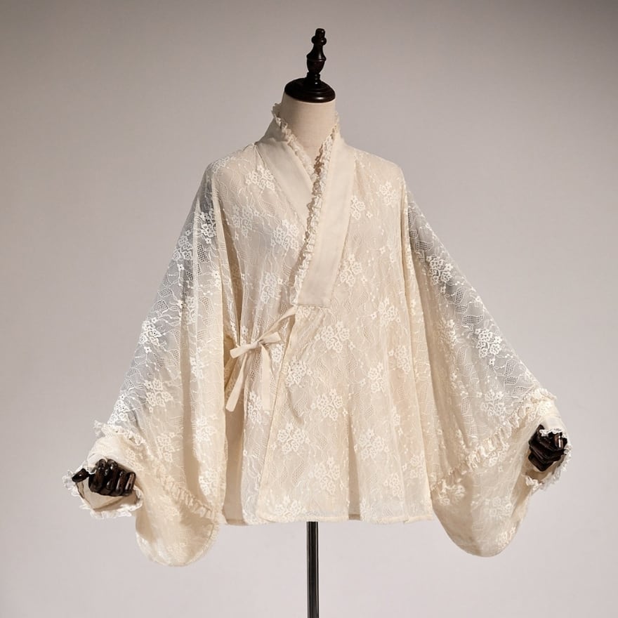 東洋の華やぎを、繊細なレースに込めて。甘く可憐な半袖ブラウスが、あなたのロリィタコーデをさらに雅に彩る。