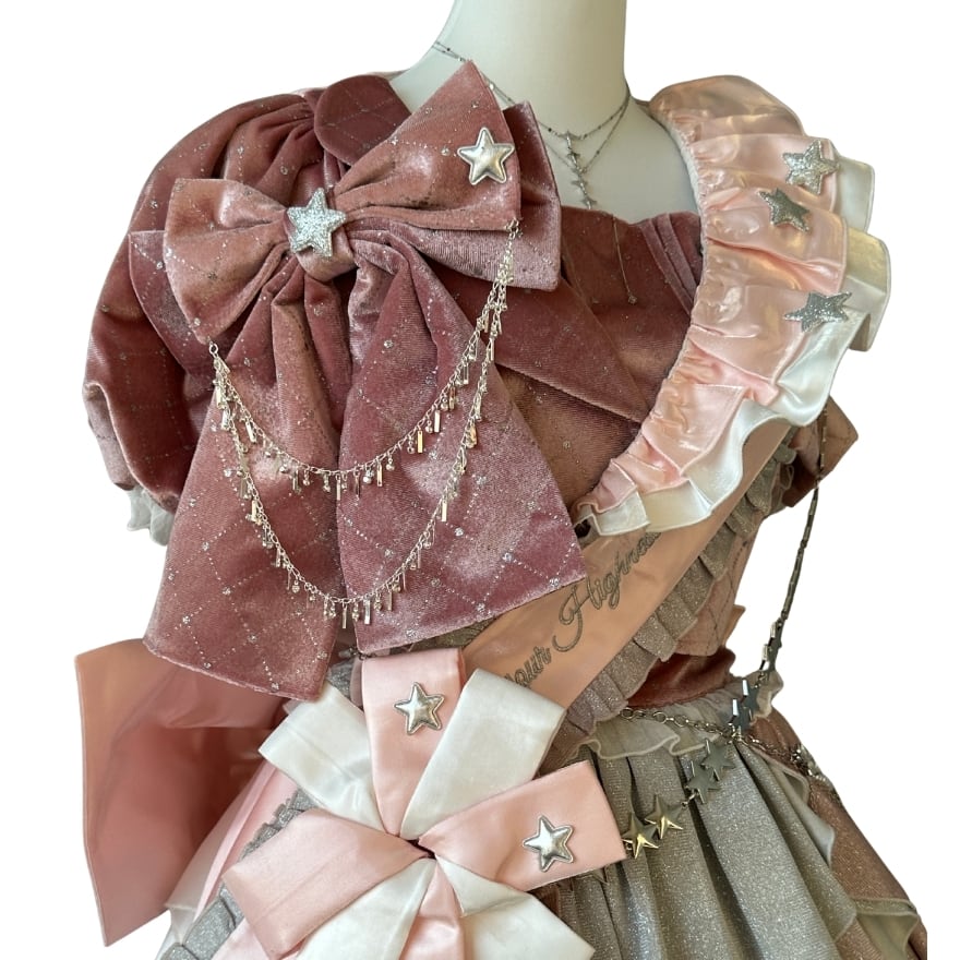 セットには、タスキ(サッシュ)や大きなリボン、アクセサリーが含まれており、これ一つでアイドルらしい華やかなスタイルが手に入ります。