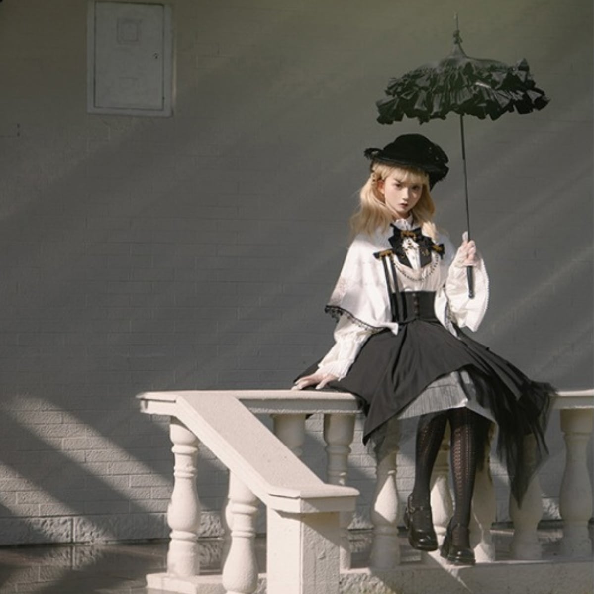 肩から羽織るだけで、シンプルなワンピースやブラウスも一気にゴシックなスタイルへと変身します。