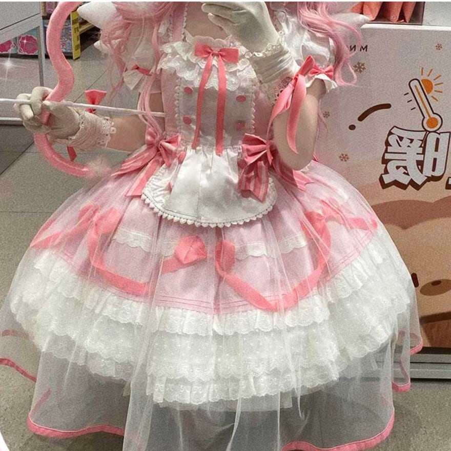 ロリィタ 甘め ワンピース プリンセス バックリボン パステルピンク コンカフェ衣装 イベント
