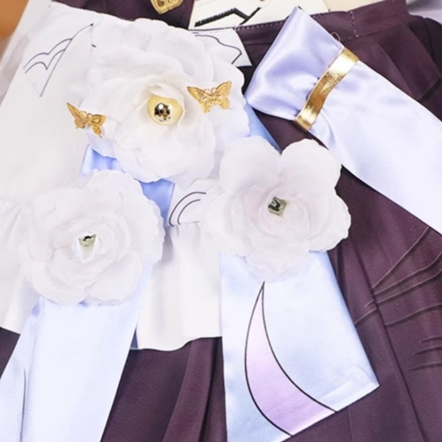 シックでありながらも、レースやリボン、ゴールドのディテールが華やかさを添えるコスプレ衣装。