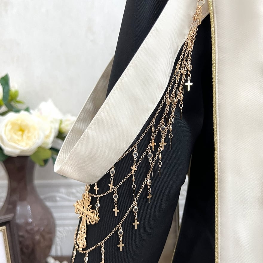 即納/ハロウィン・イベント衣装 皇子系ロリィタ 男装 十字チャーム付ジャケットセットアップ イベント ステージ 舞台衣装