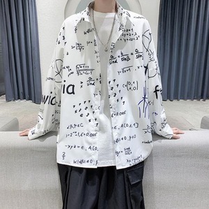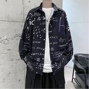 即納 メンズゴシック トップス 長袖 シャツ 数式プリント 総柄