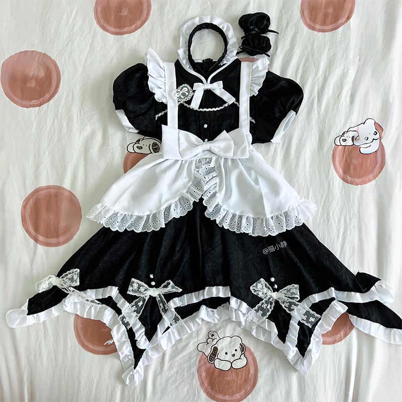 フルセット(ワンピース + エプロン + ヘッドドレス + ヘアバッグ + 胸飾り)