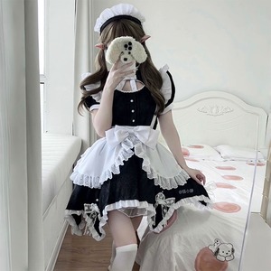 ふわふわフリルのエプロンが可愛いミニ丈メイド服です。