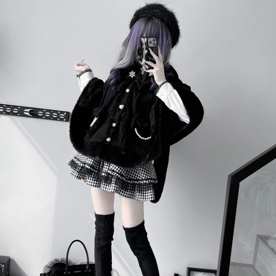 ゴスロリ 地雷系 もふもふケープ コート うさ耳 双子コーデ