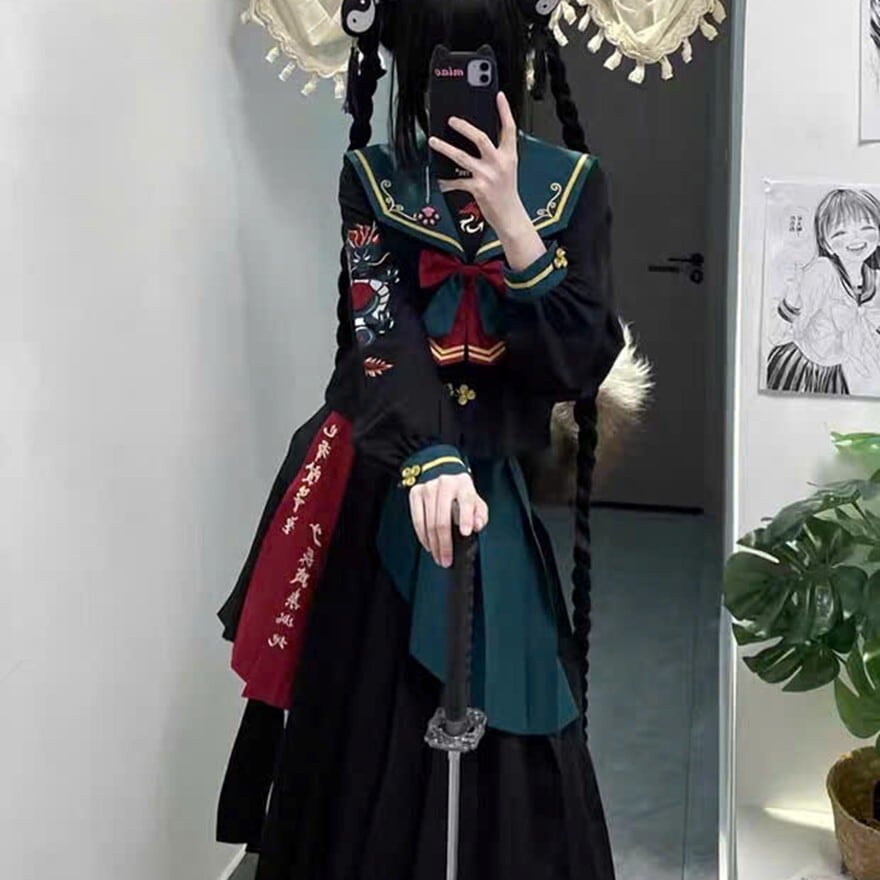 ゴスロリ 不良少女 セーラー服 セットアップ 長袖 刺繍 不良少女
