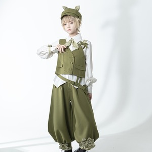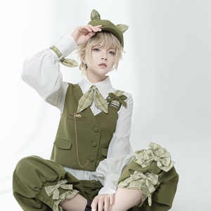 セット内訳は蝶ネクタイ付きの長袖シャツ、ベスト、7分丈のクロップドパンツになります。