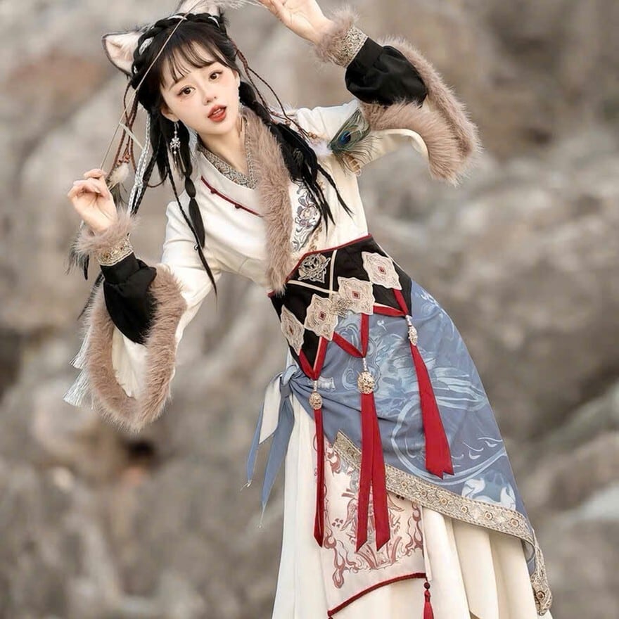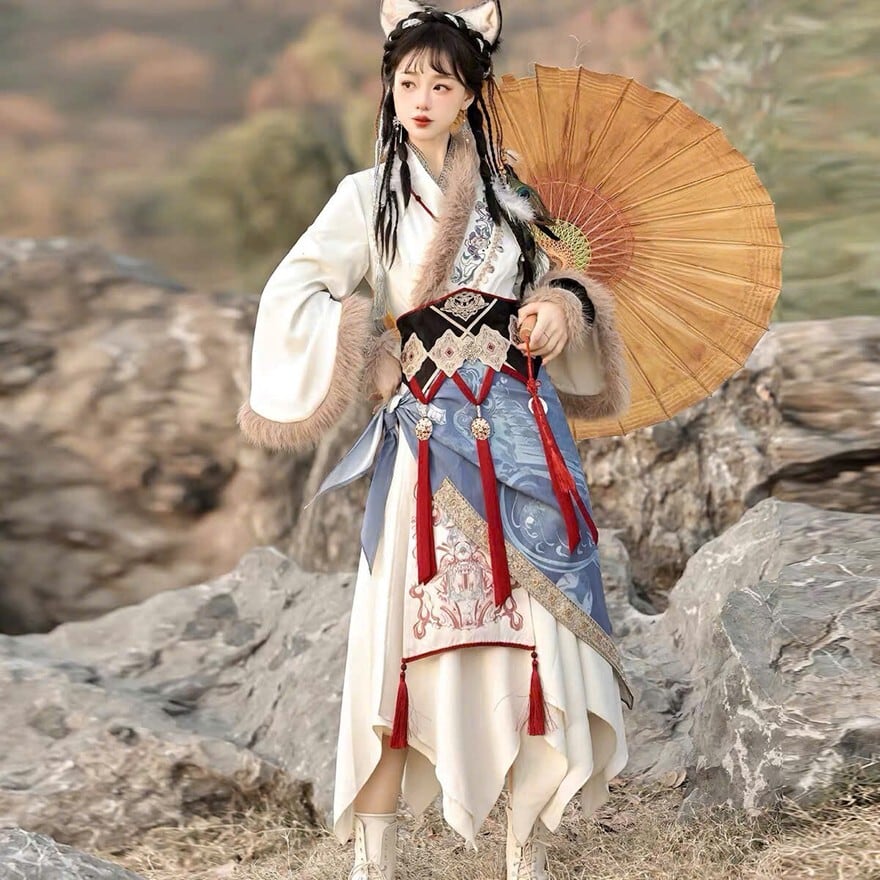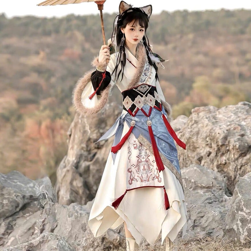 この衣装は、単なるコスプレではなく、「漢服」の優雅さとファンタジーの世界観が融合した、極めて個性的で芸術性の高い一着です。