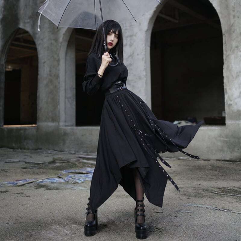 ゴスロリ系 セットアップ 長袖シャツ ウエストベルト付き 大人ゴシック