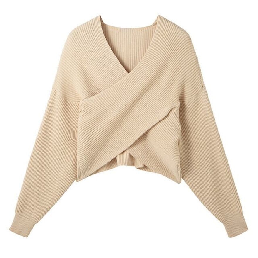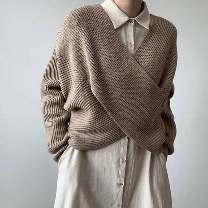 即納 秋服 モード系 ニットセーター こなれ感 クロスデザイン秋冬 セーター ざっくり オフィスコーデ