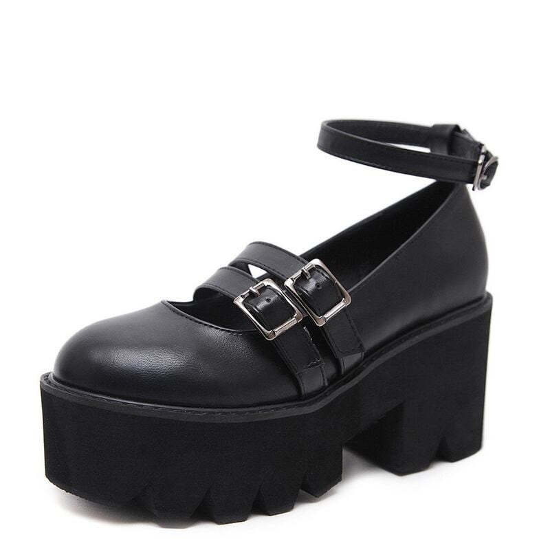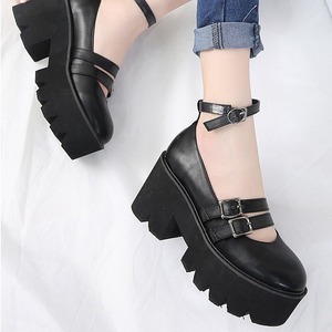 現品即納【病みゴス】3連ストラップ 厚底メリージェーン 24.0cm | 牙ソール チャンキーヒール