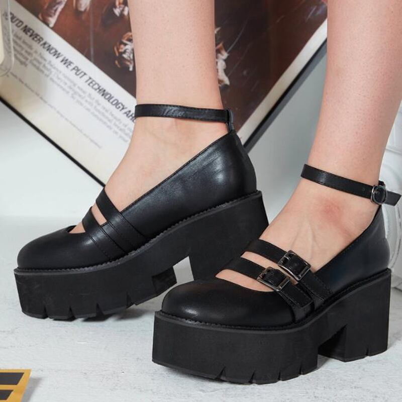 フリルやレース、ダークカラーのコーディネートに合わせれば、退廃的で美しいドールのような雰囲気を演出。足元の重厚感が、甘いスタイルに奥行きとエッジを加えてくれます。