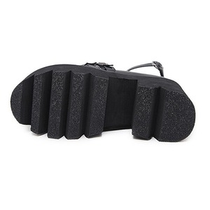 約7cmのボリューミーな厚底と、深く切り込まれたギザギザのシャークソールが、足元に強烈なインパクトと高揚感をもたらします。見た目の迫力とは裏腹に、安定感のあるブロックヒール設計で、どんな道も自信をもって踏みしめられます。