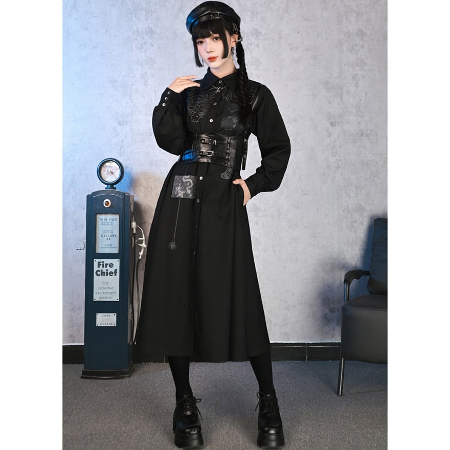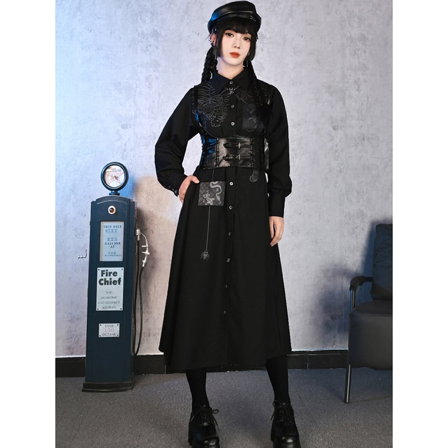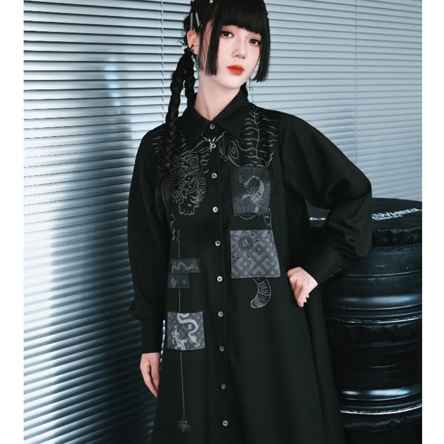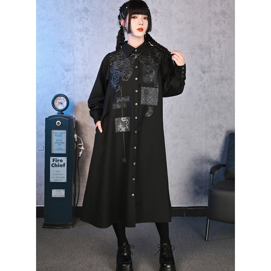 関連キーワード: #サブカル #地雷系 #シャツワンピース #中華風 #ゴシック #刺繍 #龍 #パッチワーク #黒 #ロングワンピース #モード系