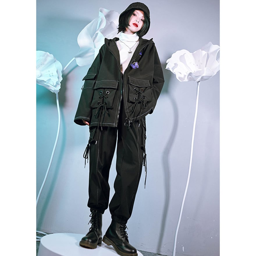 関連キーワード: #サブカル #地雷系 #ストリートファッション #パラシュートパンツ #カーゴパンツ #ワイドパンツ #レースアップ #ボーイッシュ #ダンス #黒