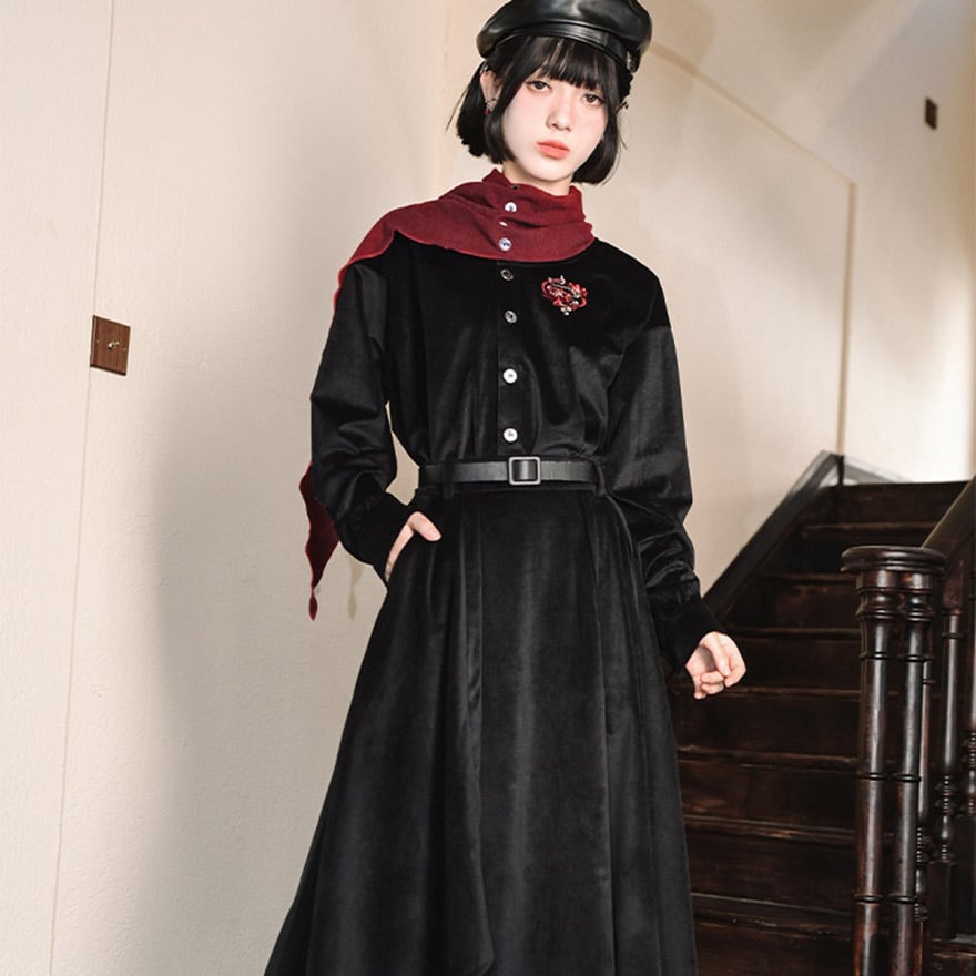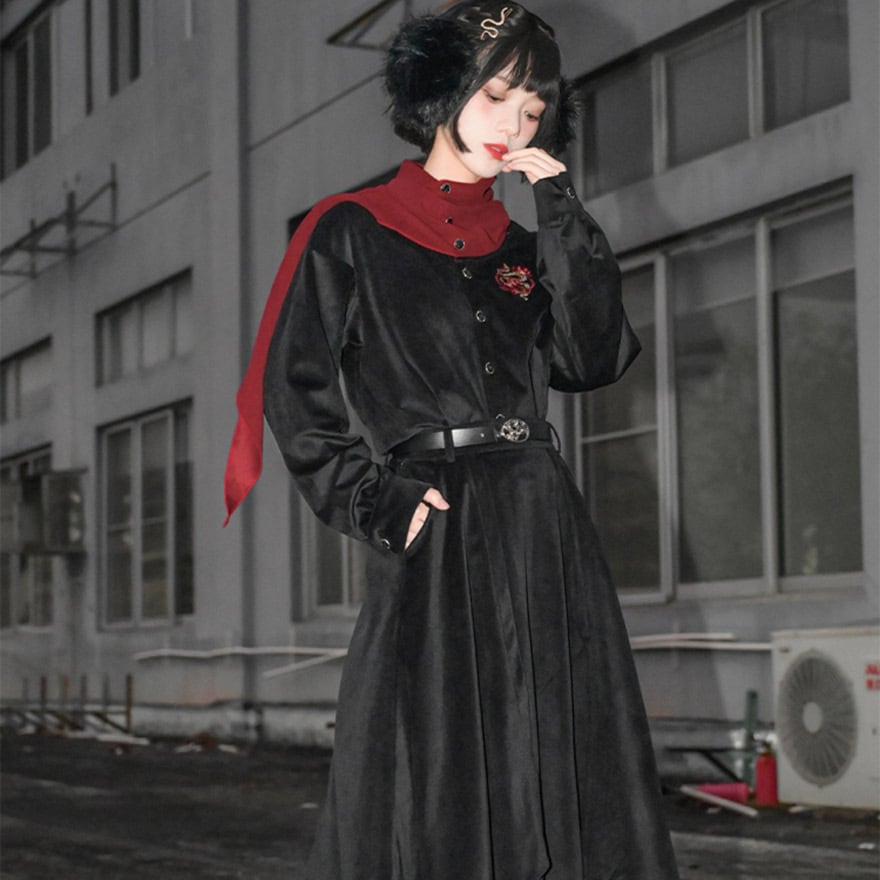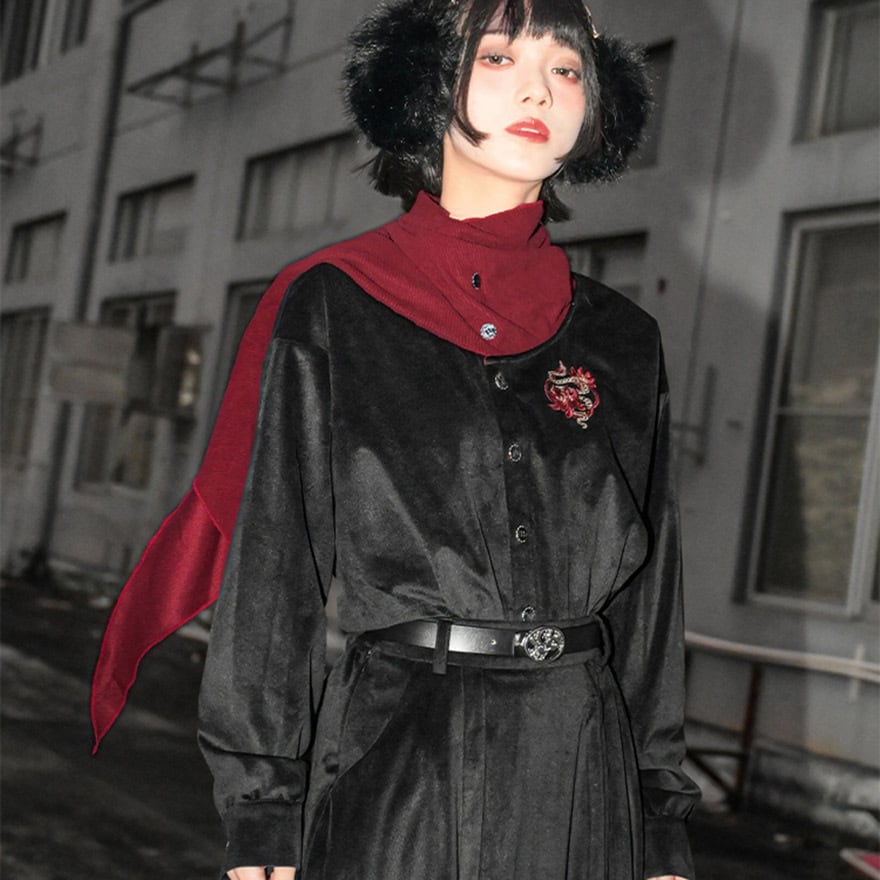 中華ゴシック ドレスシャツ 刺繍 スカーフ風 個性的 秋冬服 アラサー 古怪舎