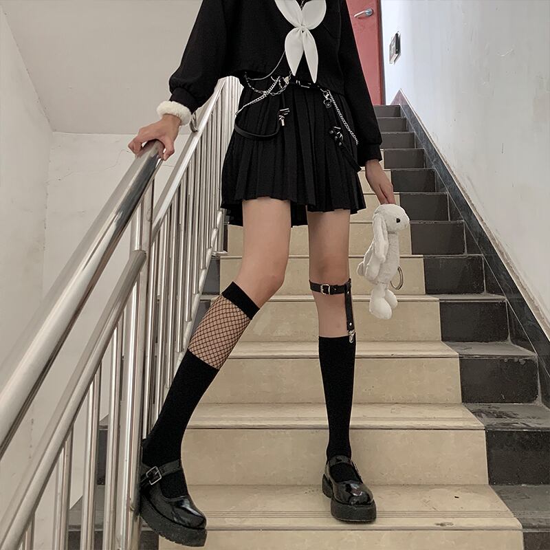 ストリート系、病み可愛いJKファッションを格上げしてくれるフィッシュネットにレッグリングが超個性的