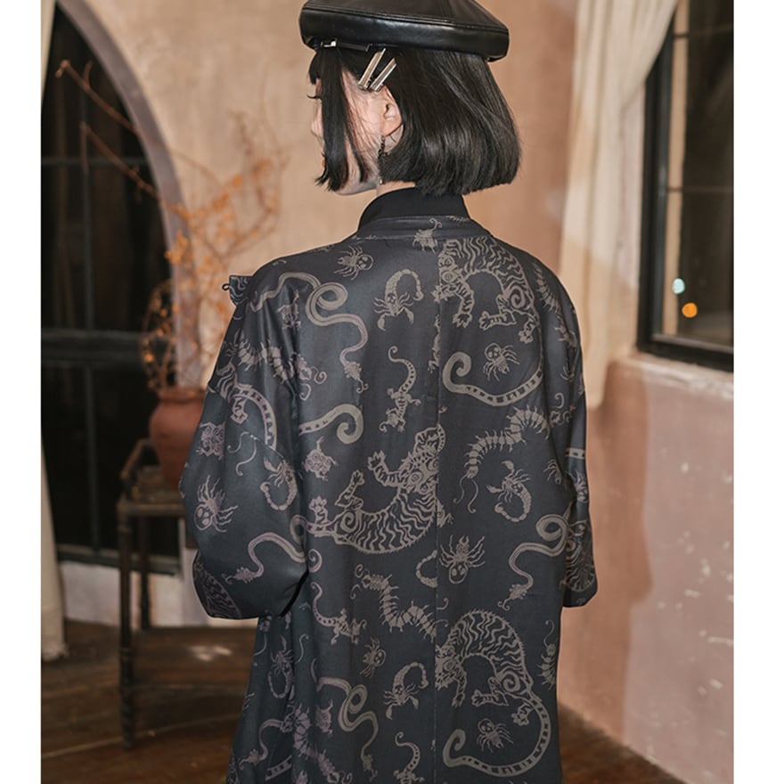 中華ゴシック ロングコート プリント柄 秋冬 古怪舎 アラサー 30代ファッション