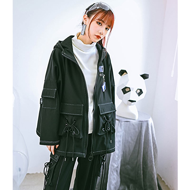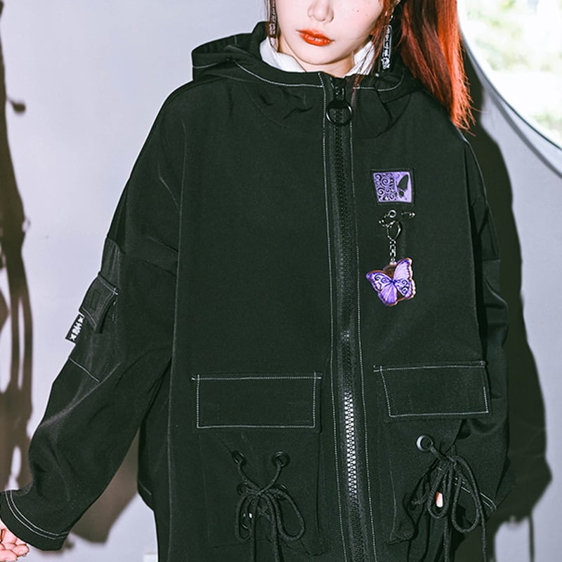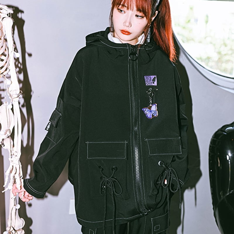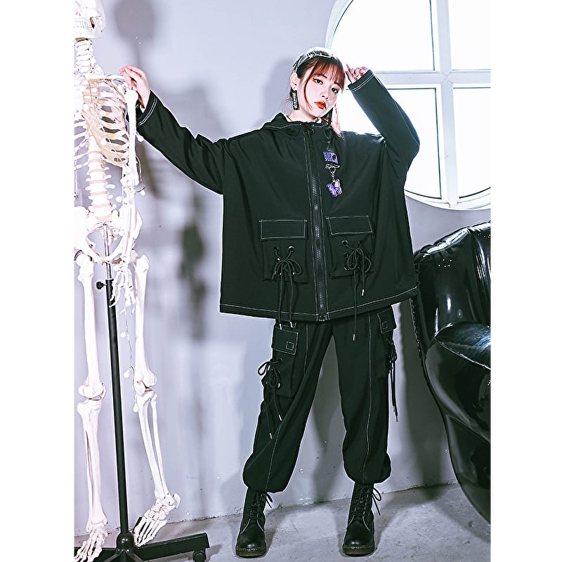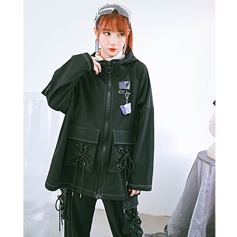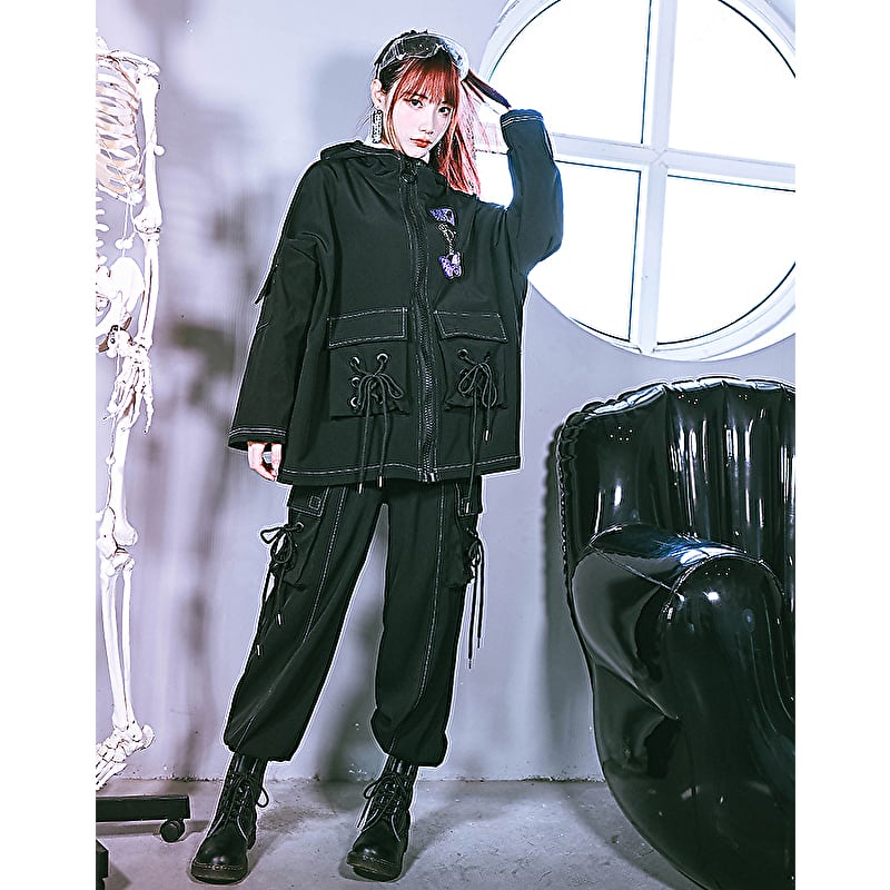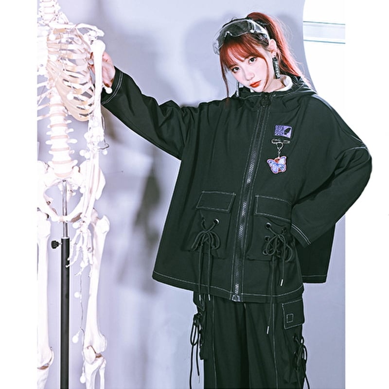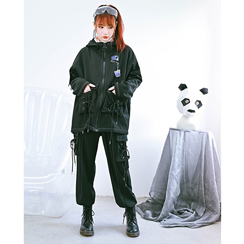 クールなストリート系デザイン、ポケットのbutterflyに編み上げがおしゃれ