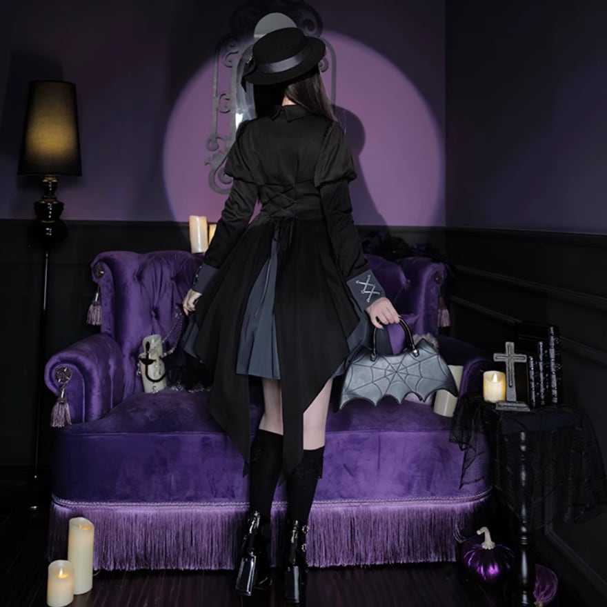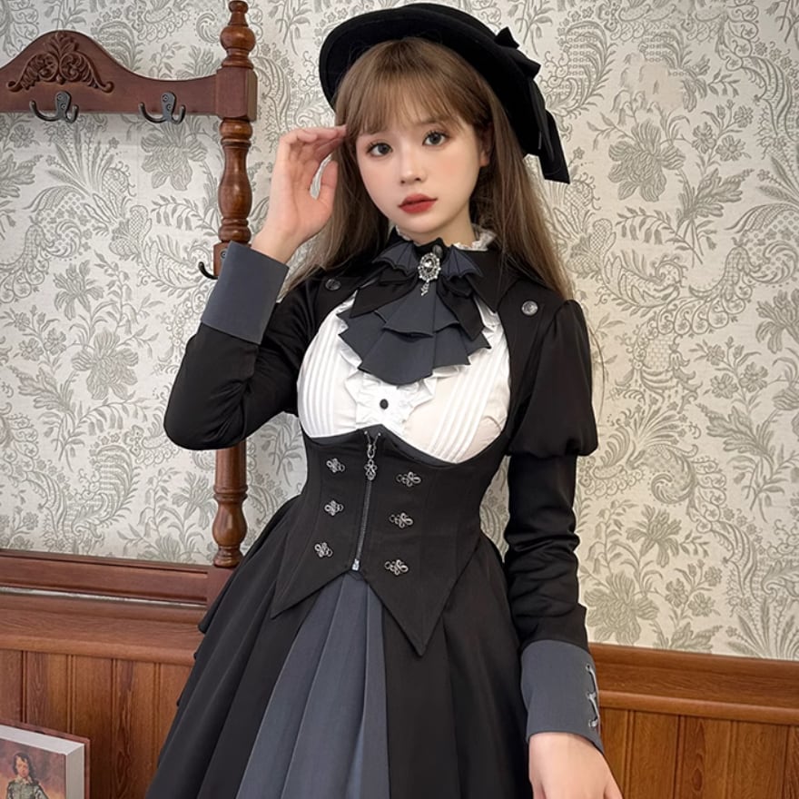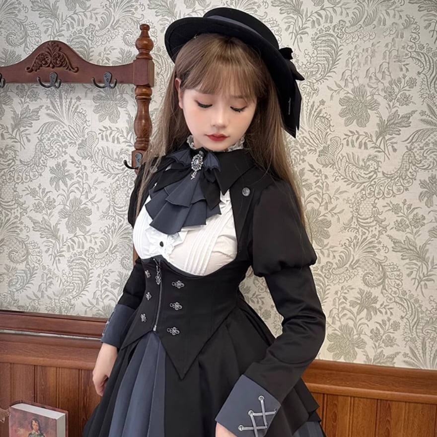 写真の燕尾服風コルセットジャケットをコーデすれば可愛いシルエットが叶います。