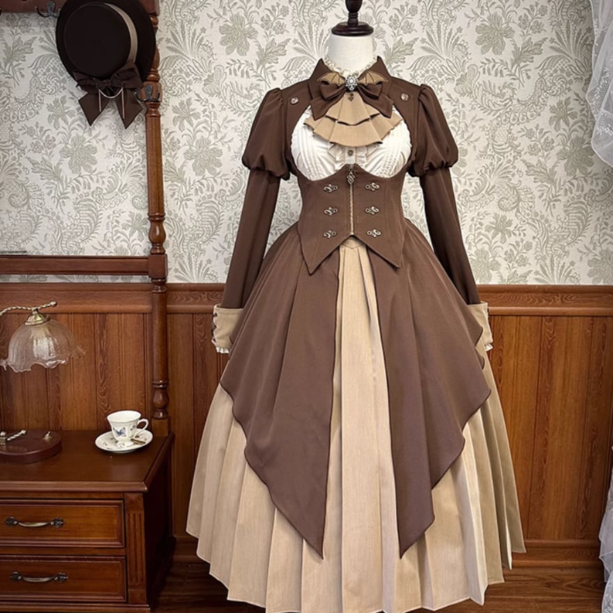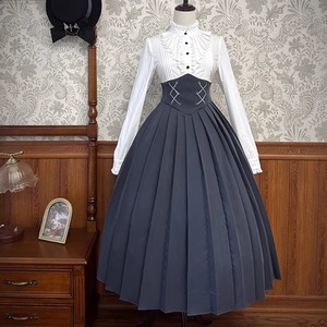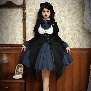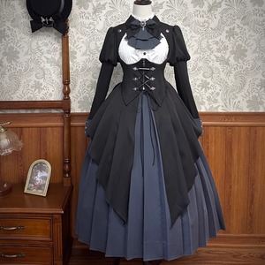 燕尾服風のスカートカバーにコルセットをしたようなデザインが個性的