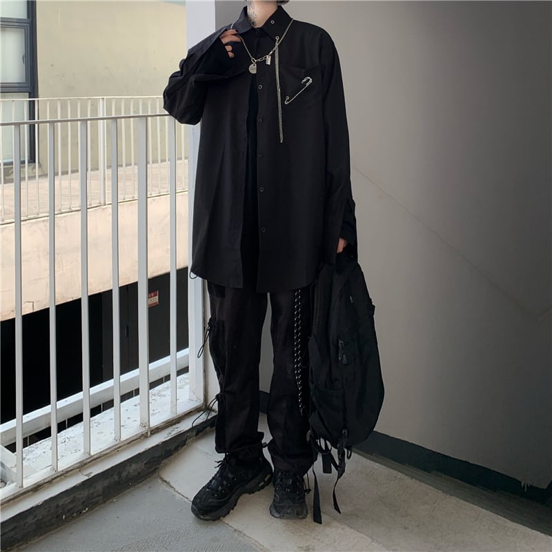 秋から春先まで着回せるダークで闇かわいいストリート系黒シャツです