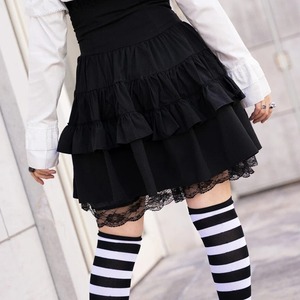 ハイウエストなクロス編み上げにシックなレースが病み可愛い地雷系スカートです。